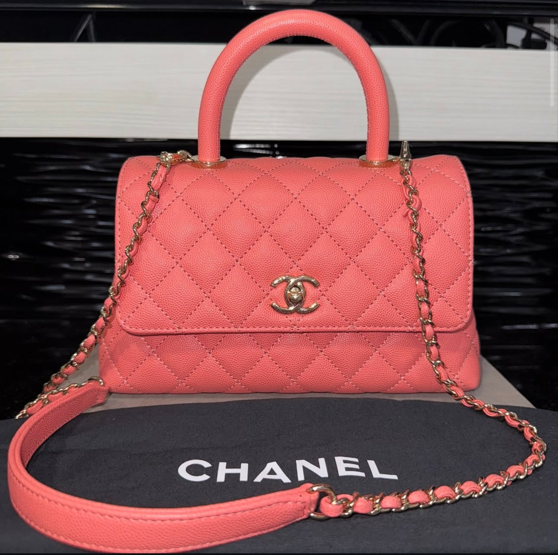 Pre-Owned Chanel Caviar Quilted Mini Coco Handle Flap in Coral