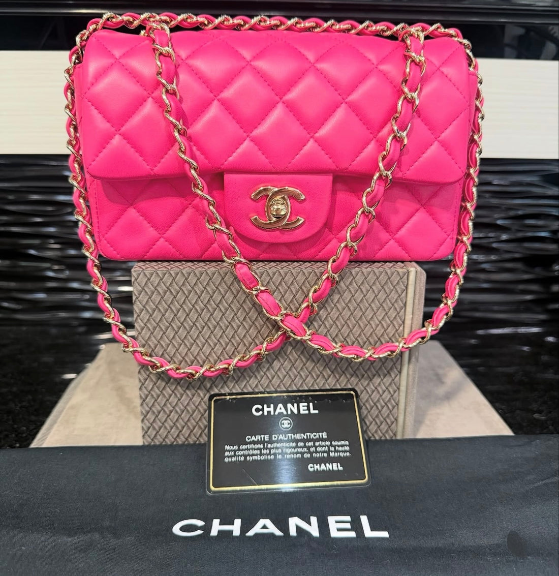 Pre-Owned Chanel Classic Mini Rectangular Quilted Flap Bag in Pink Lambskin with Gold Hardware