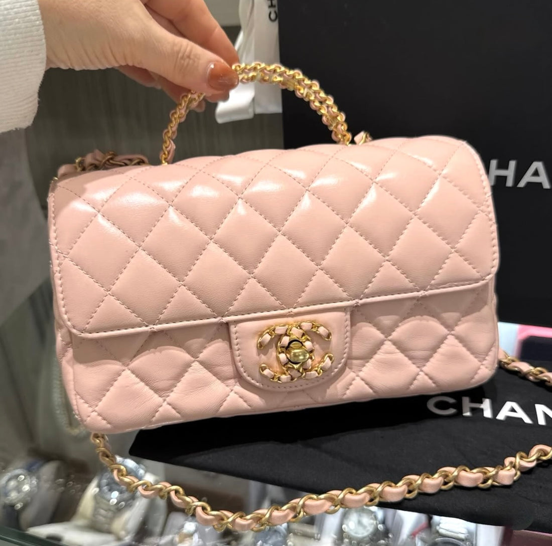 Pre-owned Chanel 2024 Light Pink Lambskin Top Handle Single Flap Antique Gold Hardware