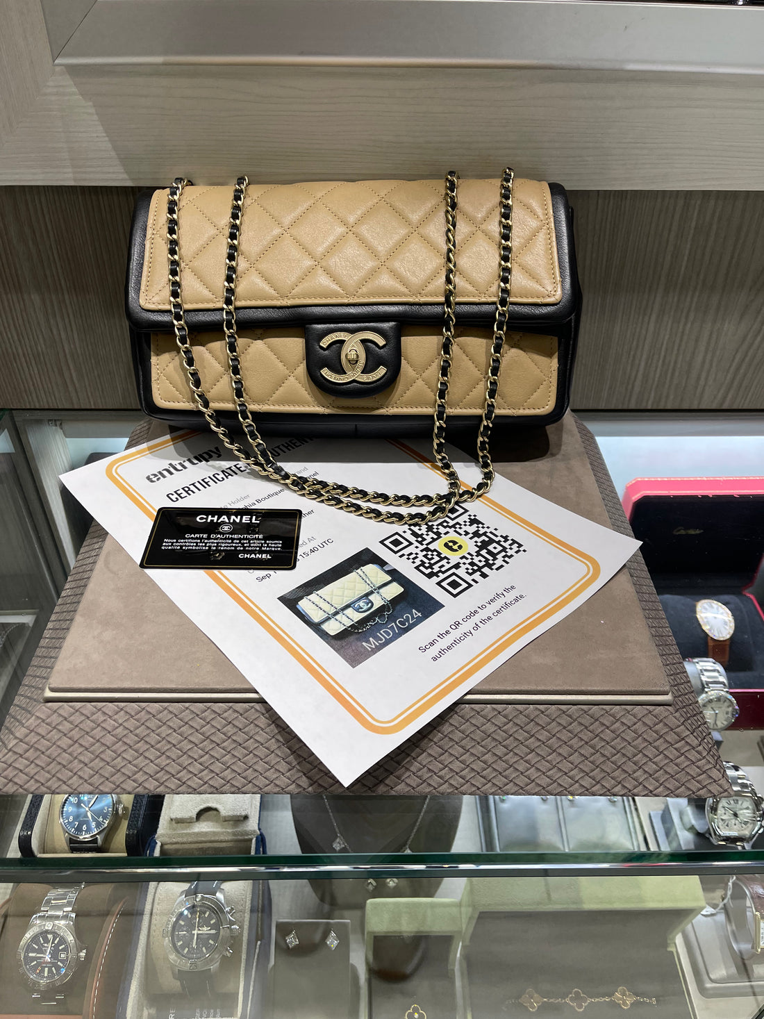 Pre-owned Chanel Medium Graphic Flap Bag in Crème and Black