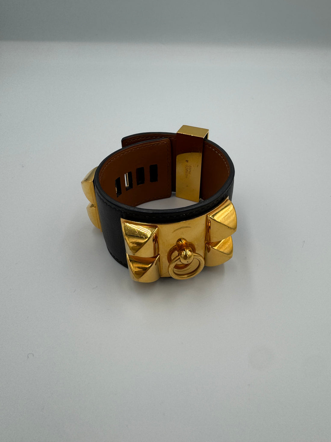 Pre-owned Hermes Collier de Chien Bracelet in black gold-plated leather