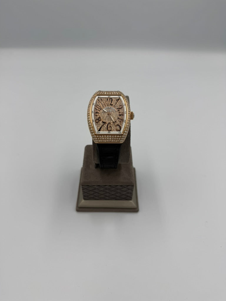Pre-owned Franck Muller Vanguard All-Diamond Watch w/ Alligator Strap Rose Gold 35mm ref.V32 SC AT FO