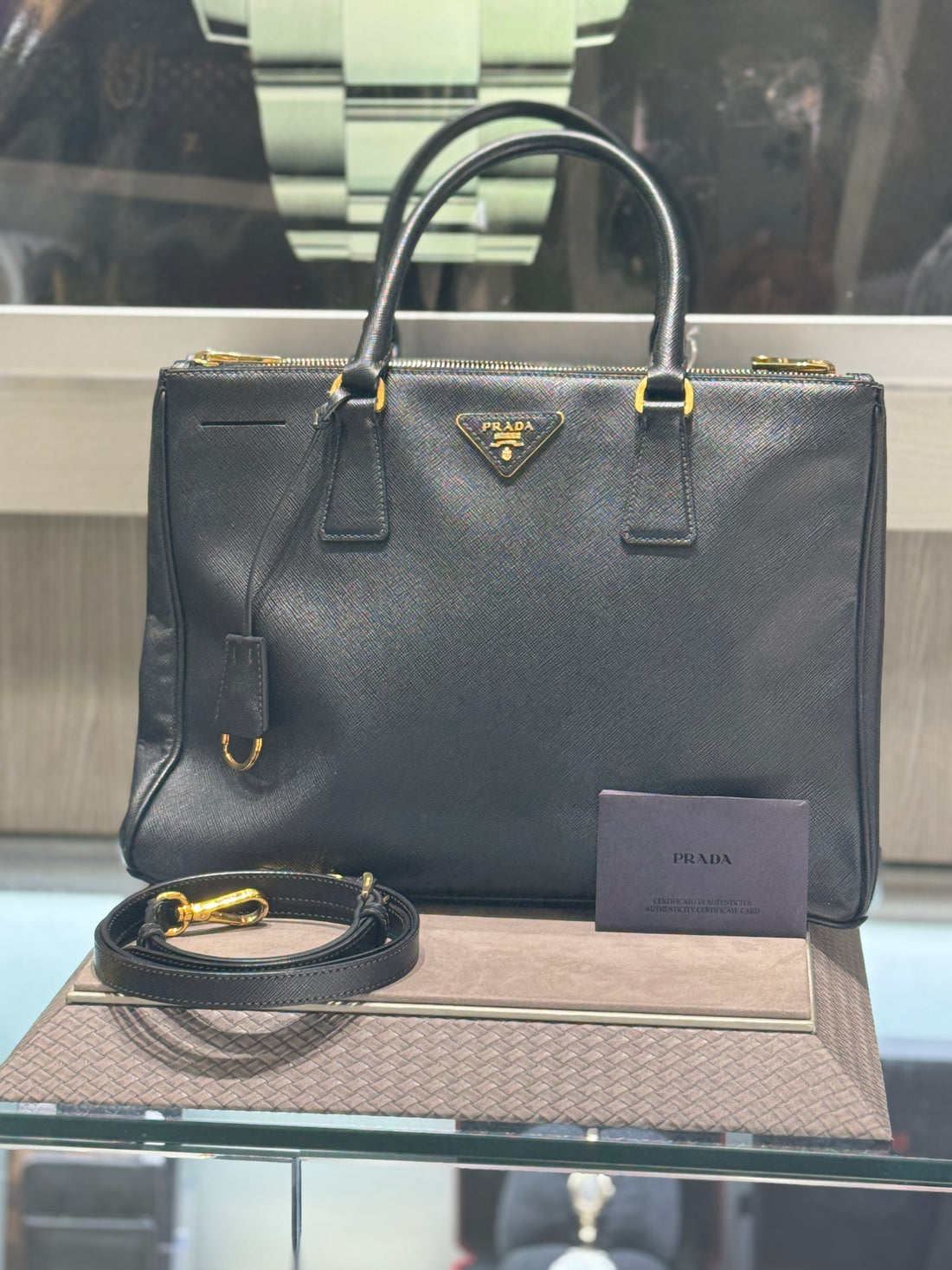 Pre-owned Prada Lux Double Zip Black Saffiano tote with strap