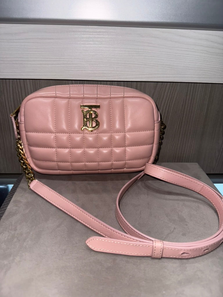 Pre-owned Burberry Mini Lola Quilted Camera Pale Pink Lambskin Crossbody