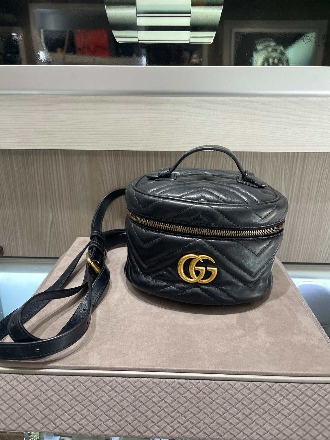 Pre-owned Gucci Mini GG Marmont Vanity Backpack in Black Matelassé Leather