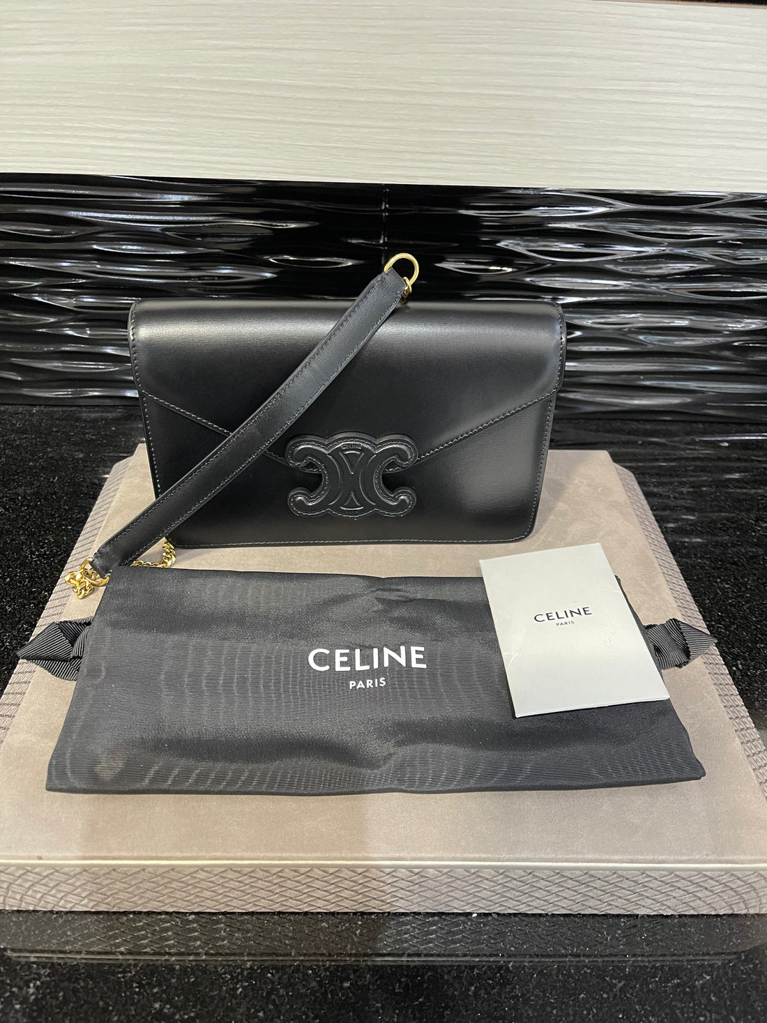 Pre-owned Celine Wallet on Chain Margo in Shiny Calfskin – Black with Gold Hardware