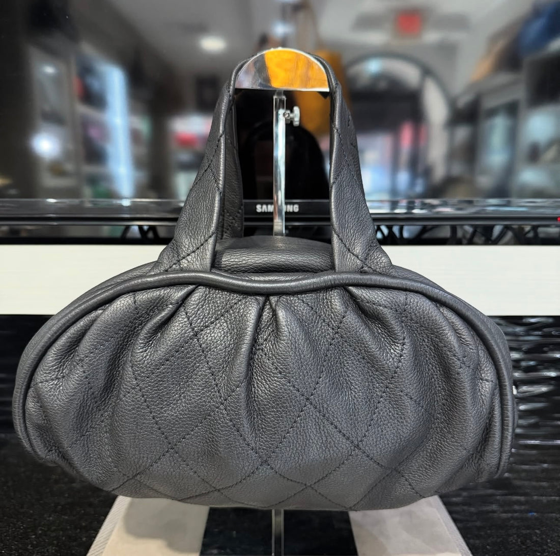 Pre-owned CHANEL Le Marais Black Deerskin Quilted Leather Bowler Bag (2005–2006 Collection)