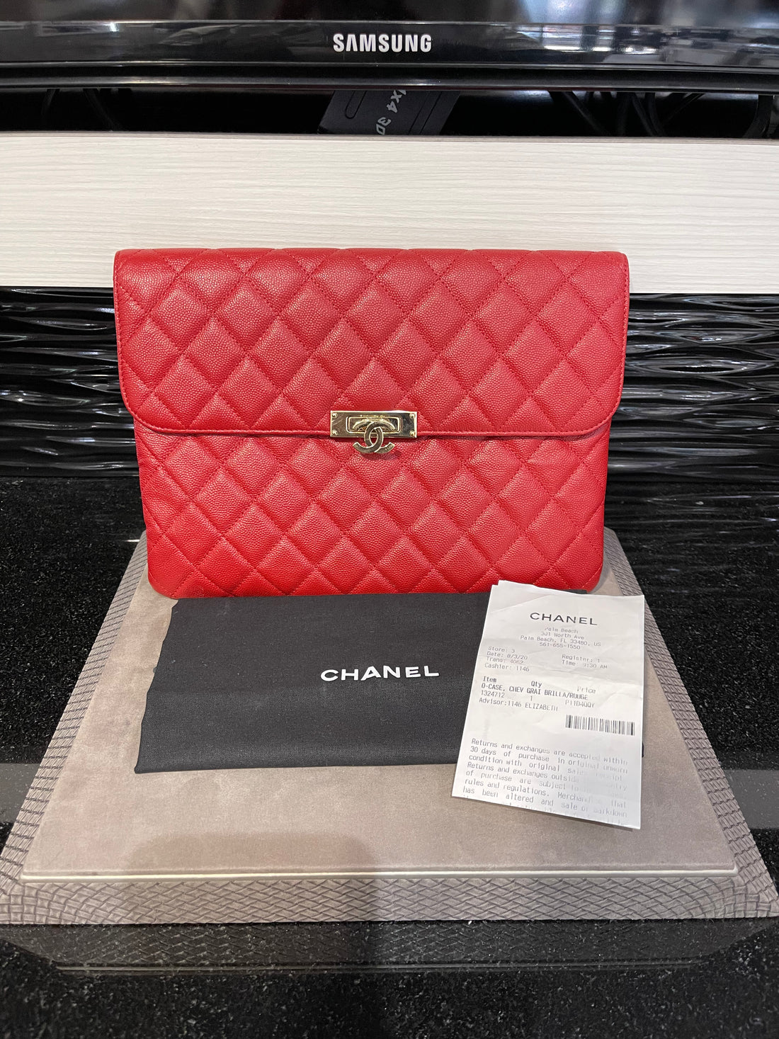 Pre-owned Chanel Red Quilted Caviar O Case pouch clutch