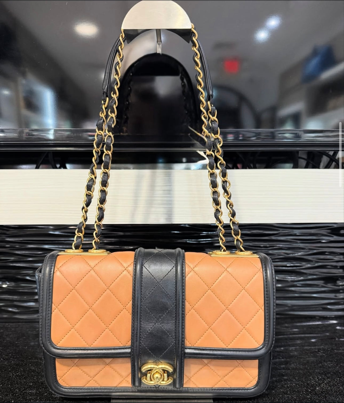 Pre-owned Chanel Elegant two tone tan black single flap medium (2016 Collection)