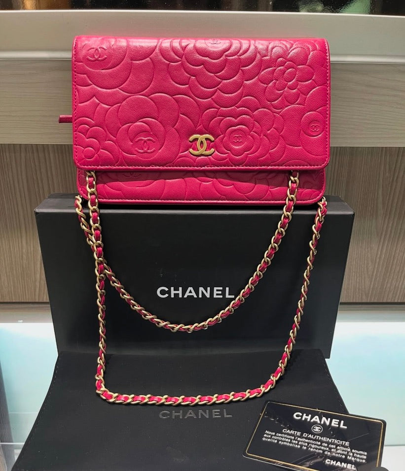 Pre-owned Chanel camilla WOC Dark Fuchsia Pink with card box duster
