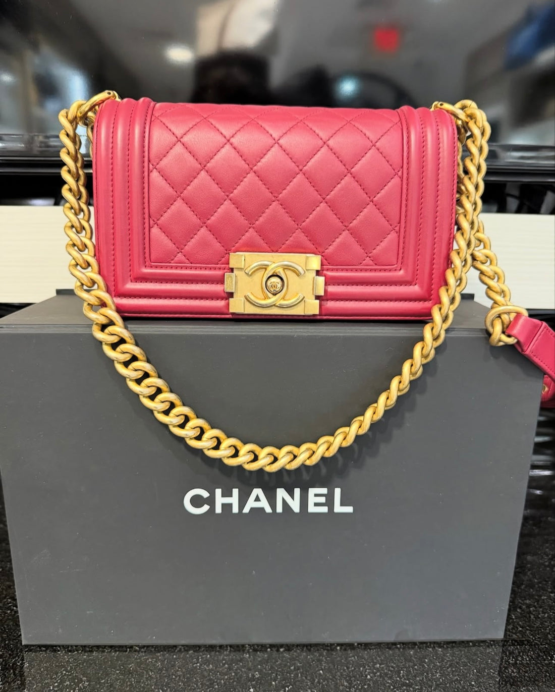Pre-owned Chanel Small Boy Flap Bag Dark Pink Quilted Lambskin with Antique Gold Hardware (2018–2019)