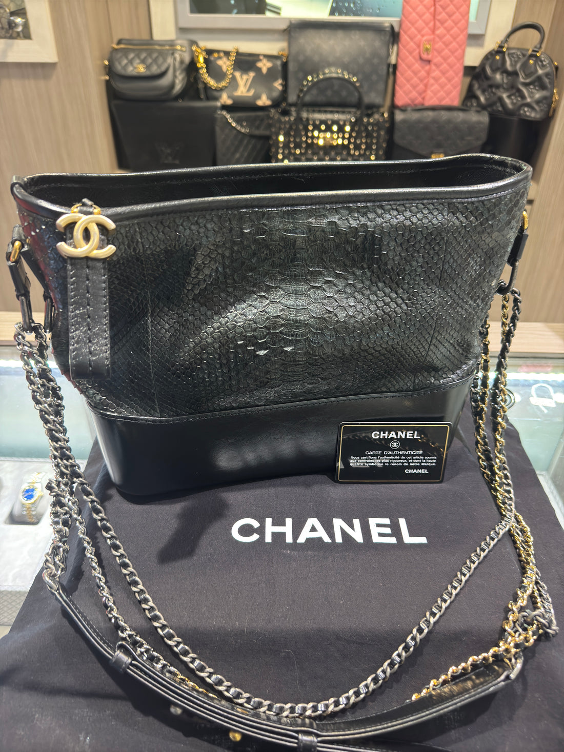Pre-owned Chanel Gabrielle Medium Black Snakeskin (2017-2018)