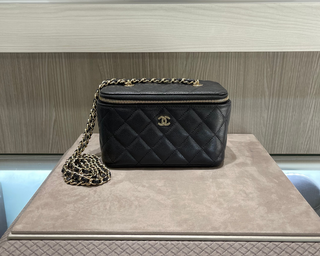 Chanel Small Vanity Case Black Caviar with Crossbody chain