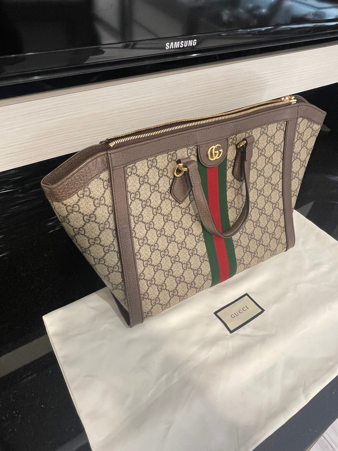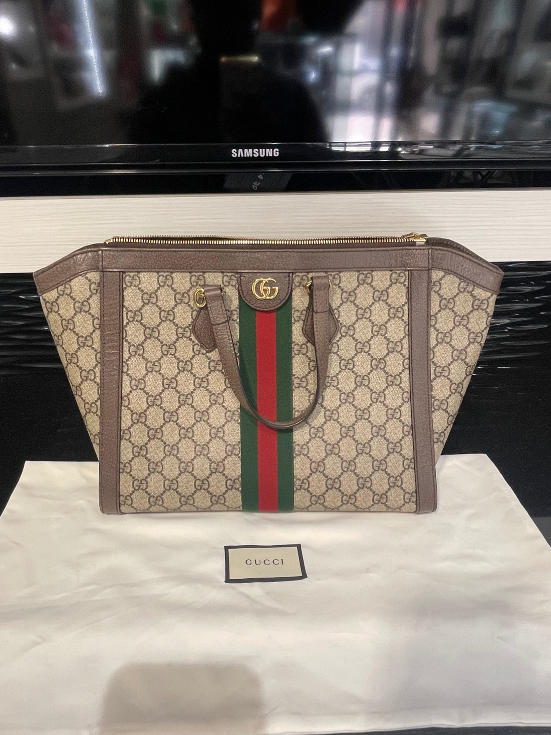 Pre-Owned Gucci GG Supreme Monogram Web Medium Ophidia Tote Bag Brown (no strap) Style:524537