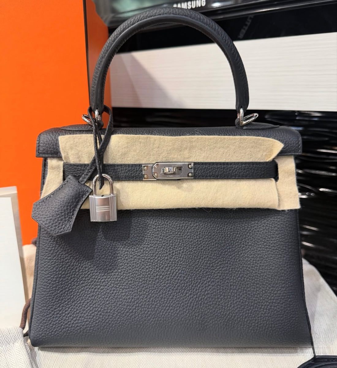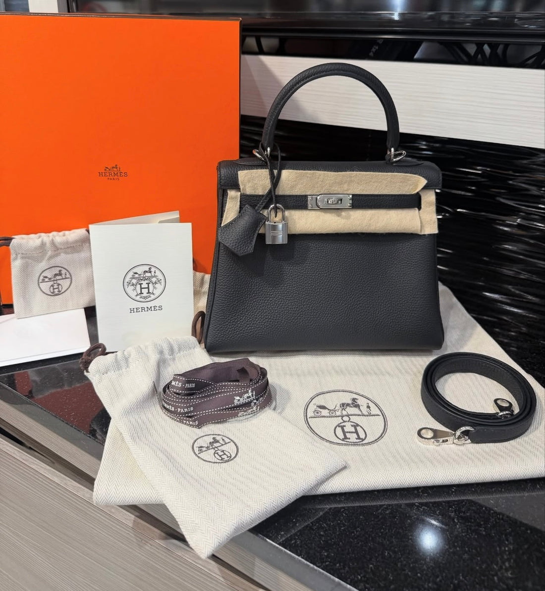 Unworn Hermes Kelly 25cm in Noir Togo leather with Palladium Hardware (2024)