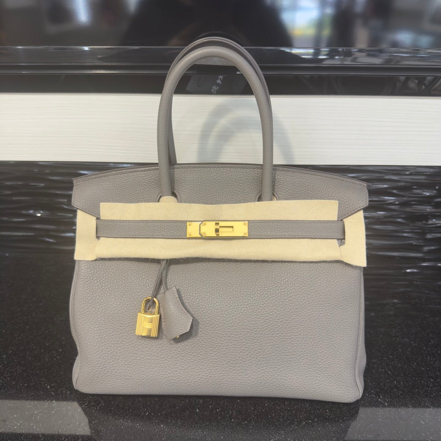 Pre-owned Hermes Birkin 30 Togo Leather Gris Etain Gold Hardware ZPY823AW (2021 production)
