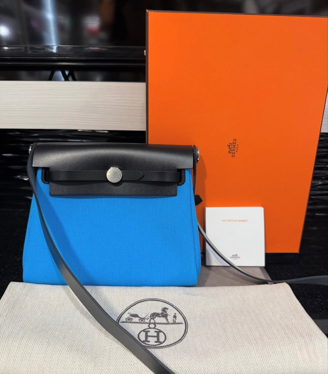 Unworn Hermes Military Toile Vache Hunter Herbag Zip Retourne 20 Bleu Riviera Black (2025)