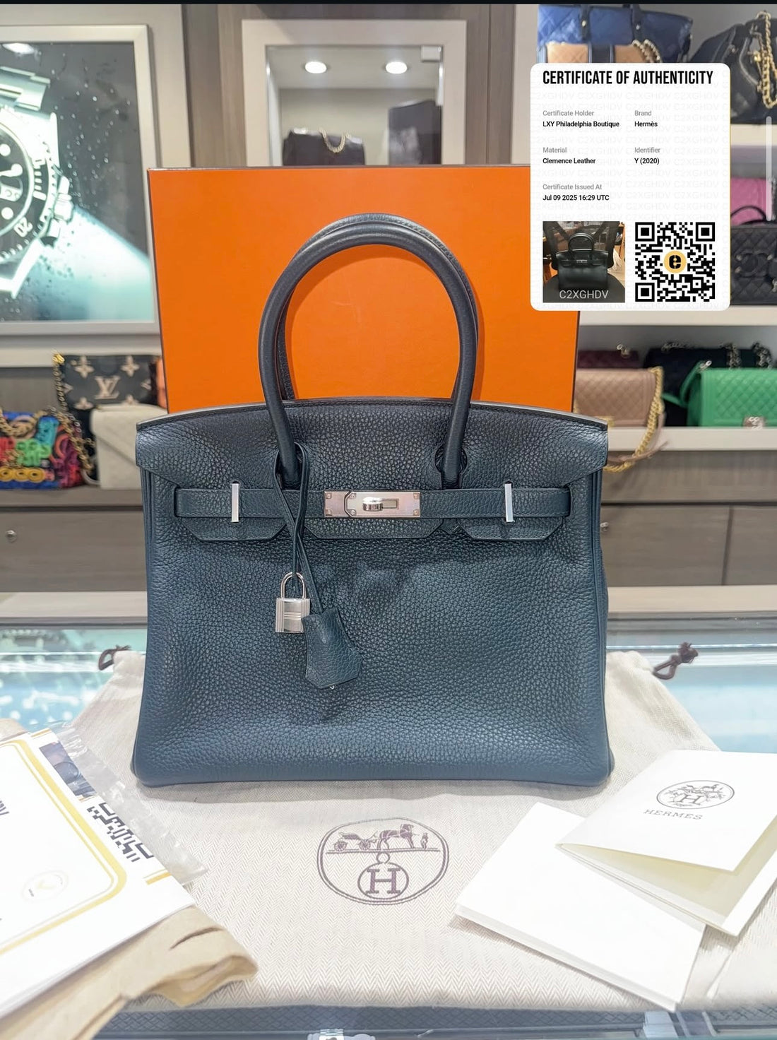 Pre-Owned Hermes Birkin 30 – Clemence Leather in Vert Cypress with Palladium Hardware (2020, Y Stamp)