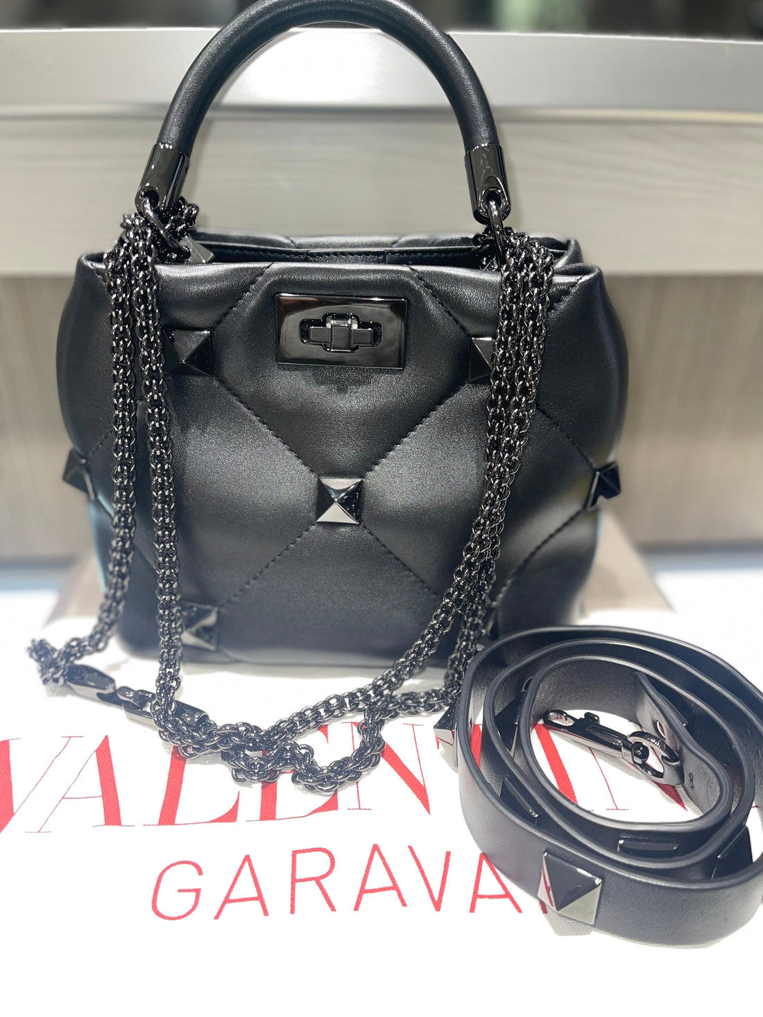 Pre-owned Valentino Roman Stud Medium Shoulder Bag Black