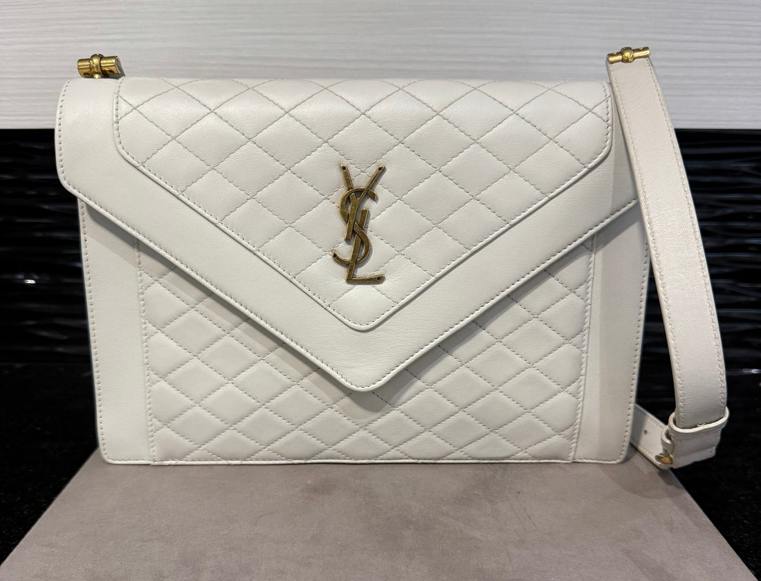 Pre-owned YSL Saint Laurent Gaby Envelope Medium Shoulder Bag in Crema Soft
