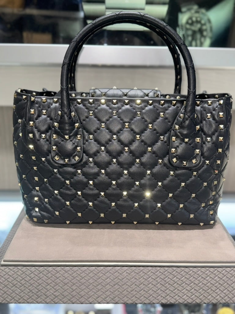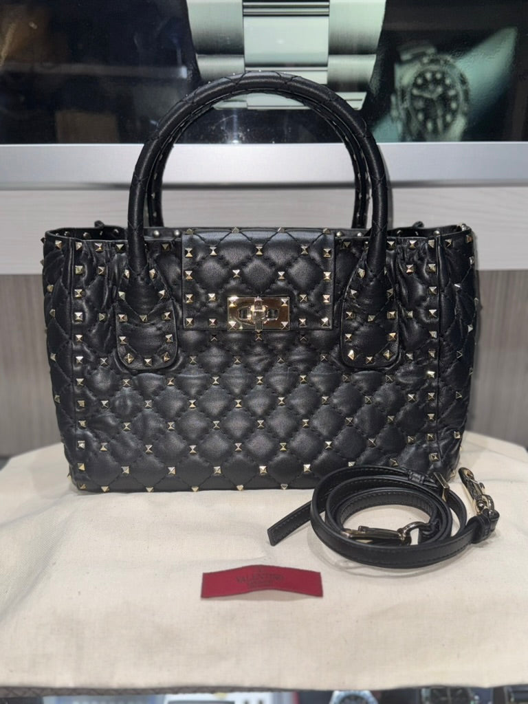 Pre-owned Valentino Black Leather Rock Stud Satchel with Strap