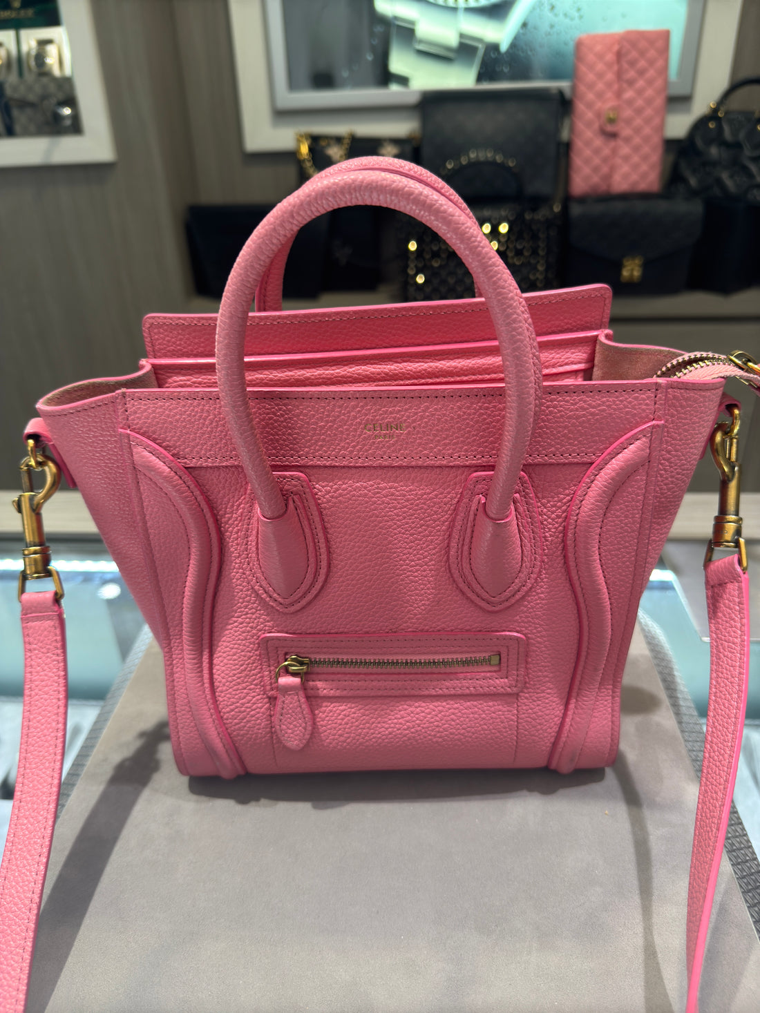 Pre-owned Celine Nano Luggage Tote Flamingo Pink with strap
