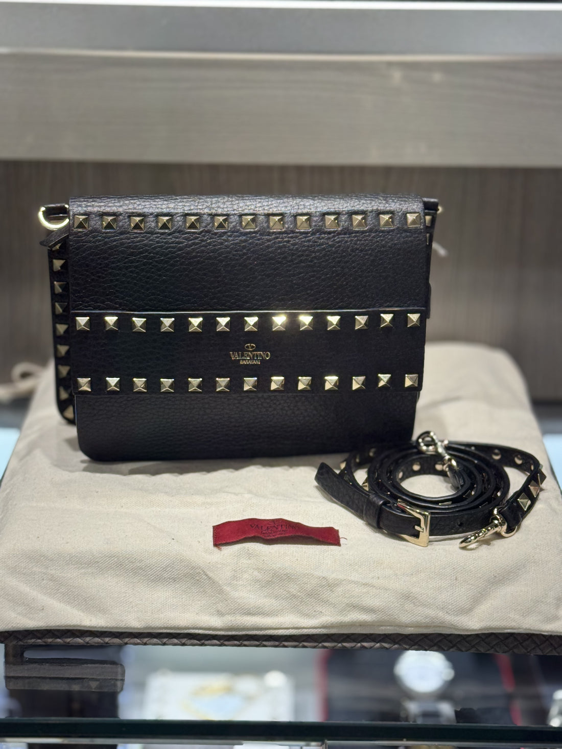 Pre-owned Valentino Pebbled Rockstud Side Slip Crossbody Black