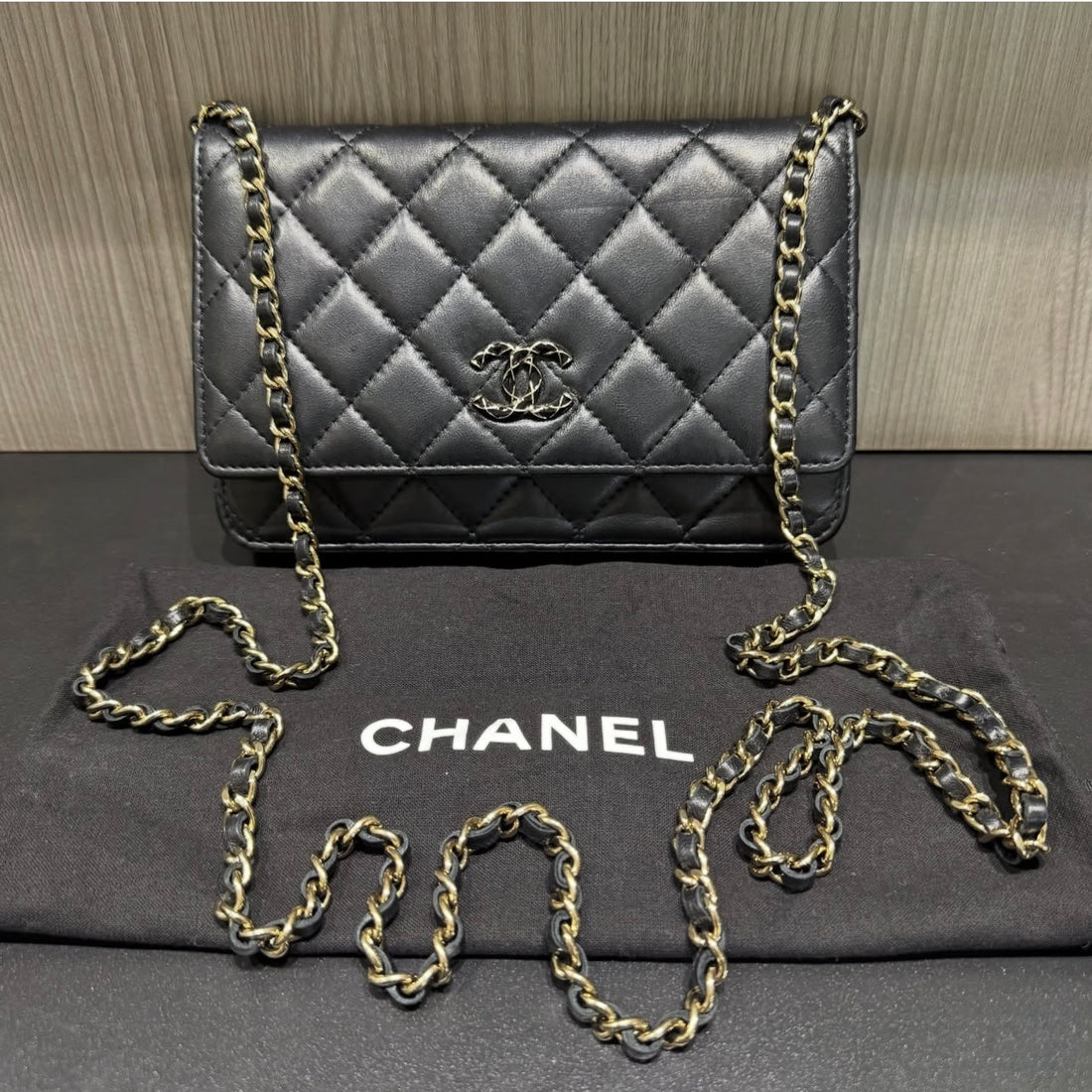 This chic Chanel Wallet on Chain is crafted from diamond-quilted black lambskin and features a...