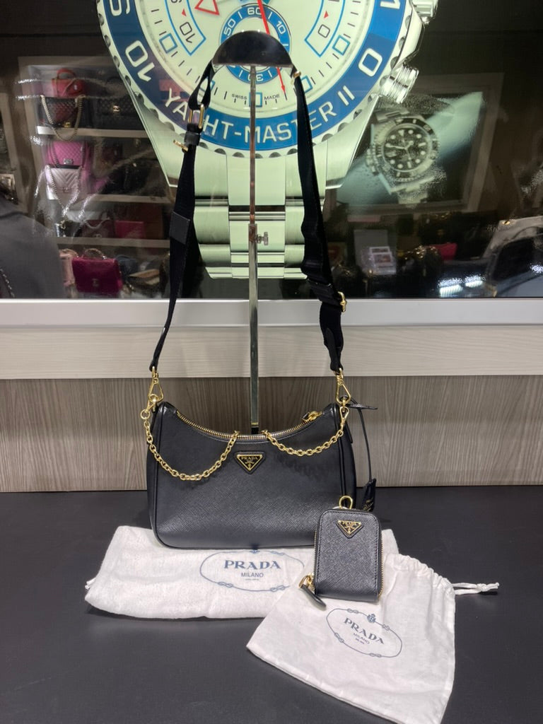Pre-owned Prada Saffiano Lux Re-Edition 2005 Shoulder Bag in Black