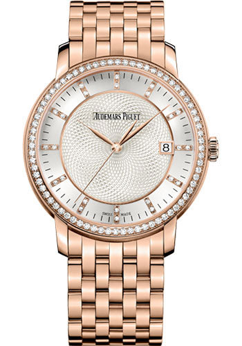 39mm 18K pink gold case, 9.00mm thick, 18K pink gold bezel, silver-toned dial with pink...