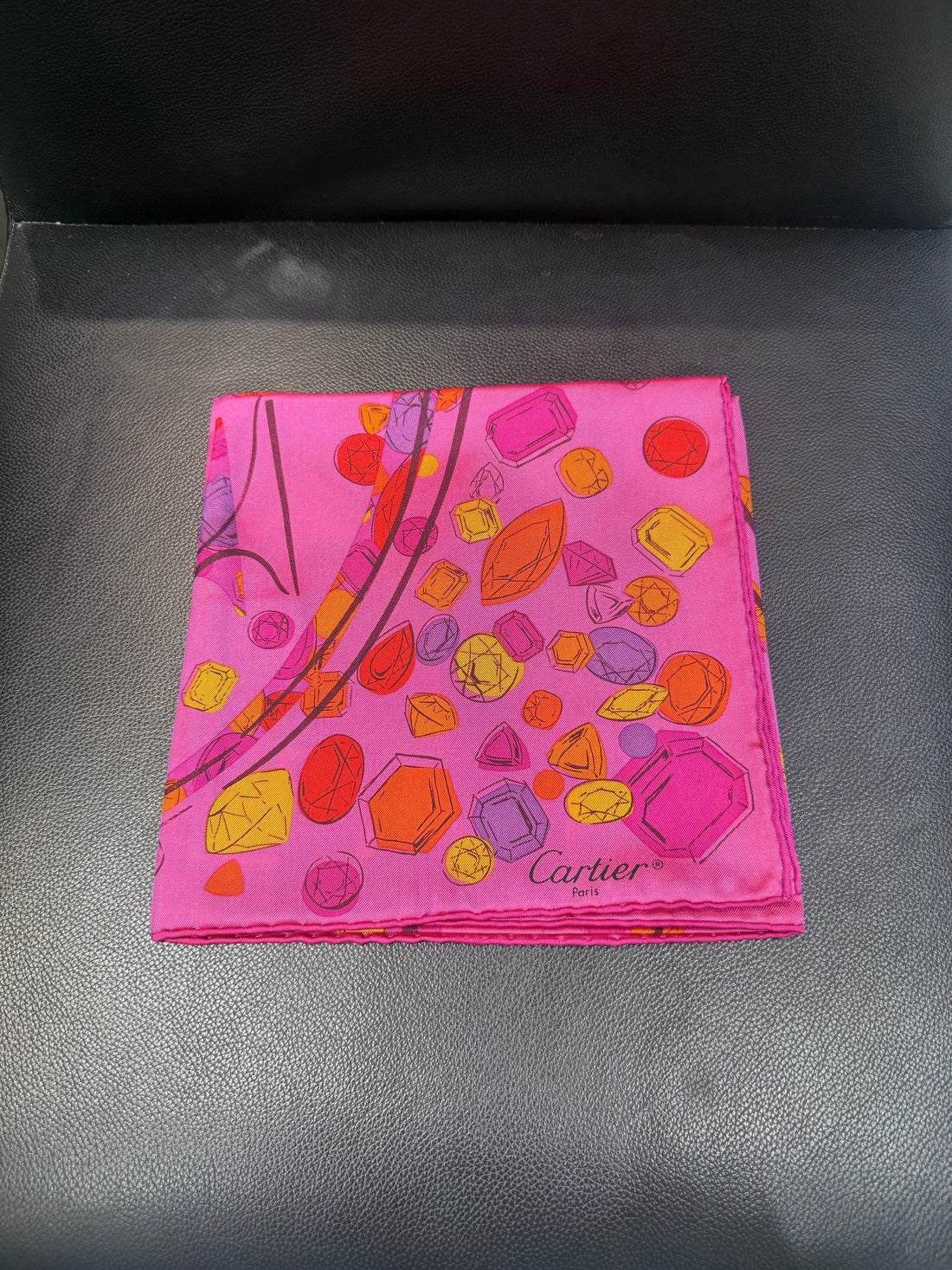 Unworn Cartier Silk Scarf – Pink Gem Motif (25” x 25”)