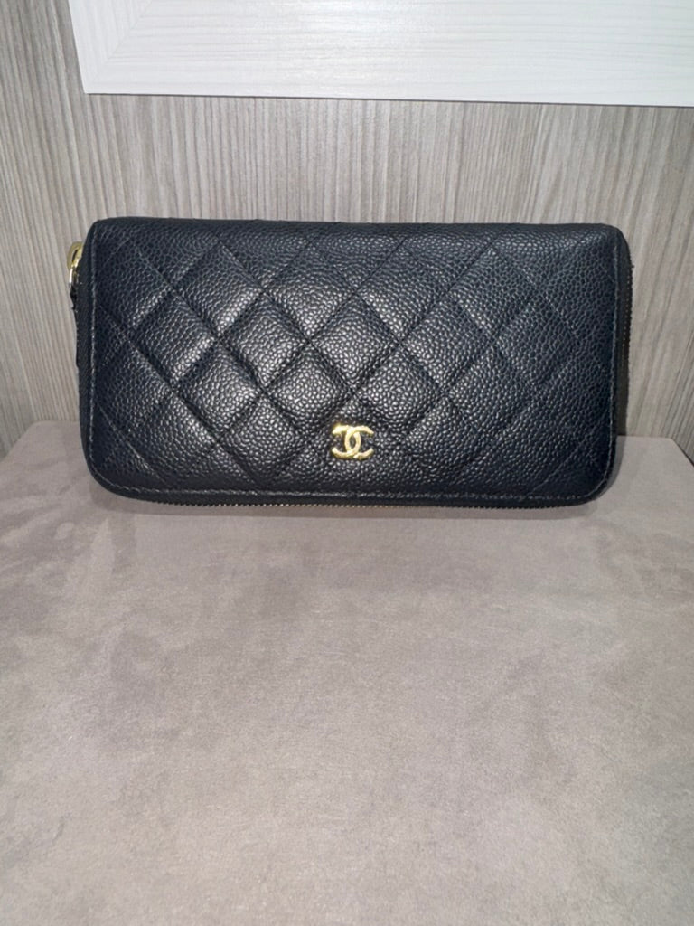 Pre-owned Chanel Black Zip Around Wallet 16968507 Caviar (2012)