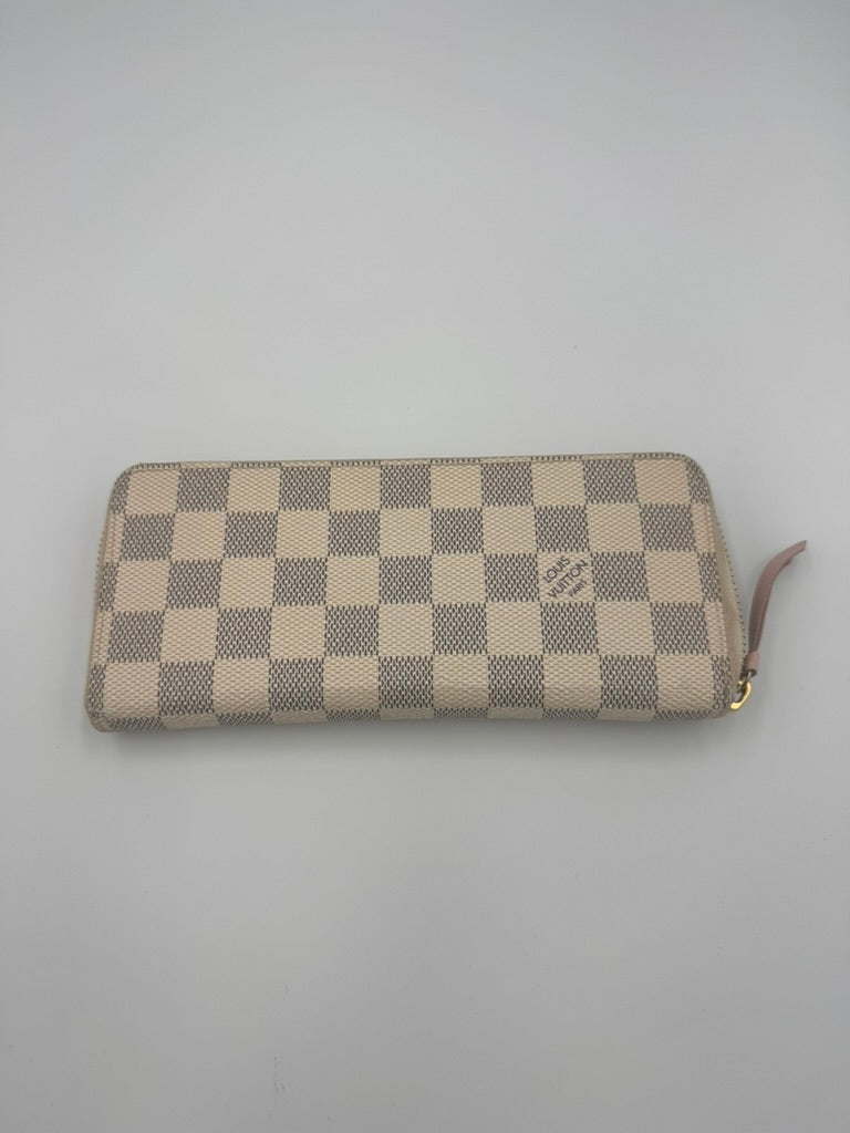 Pre-owned Clemence Wallet Damier Azur Microchip rose ballerine interior