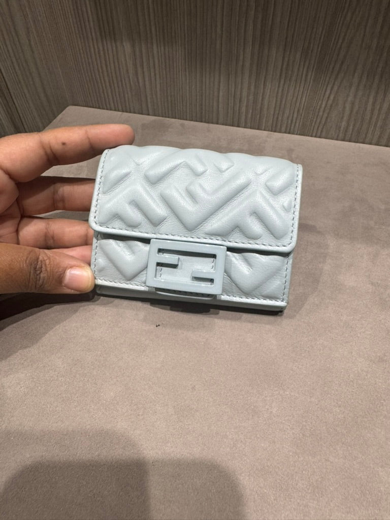 Pre-owned Fendi Baguette Micro Trifold Light blue nappa leather wallet