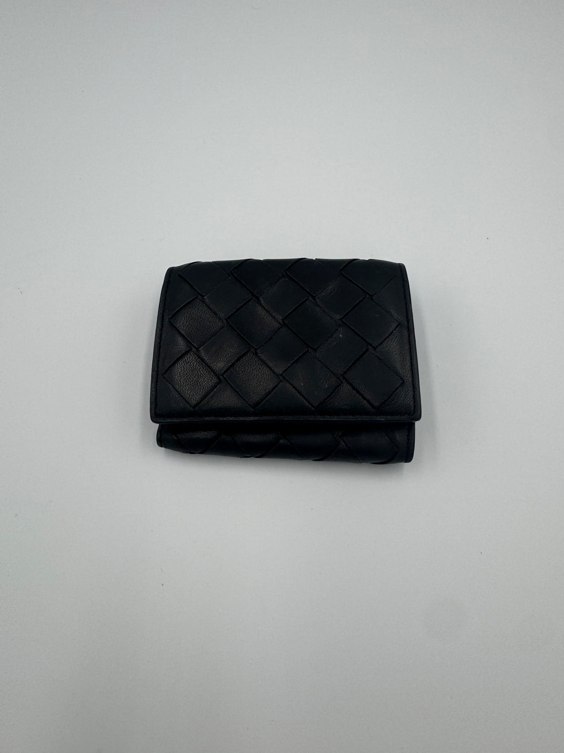 Pre-owned Bottega Veneta Trifold Black Lambskin Wallet