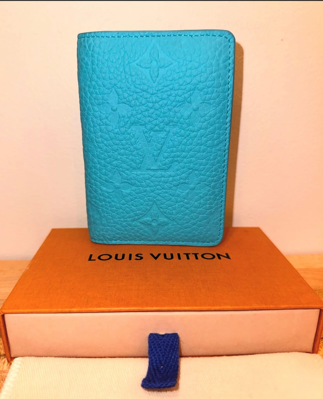 Pre-owned Louis Vuitton Turquoise Pocket Organizer Microchip Tourillon Leather
