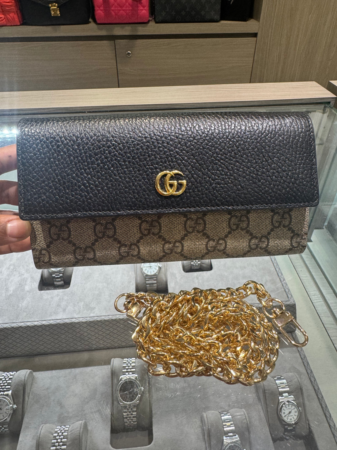 Pre-owned Gucci Marmont wallet on chain Style: 546585 (Custom Chain)