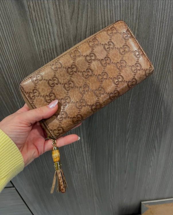 This pre-owned Gucci GG Bamboo Zip Wallet combines timeless sophistication with everyday practicality. Crafted from...