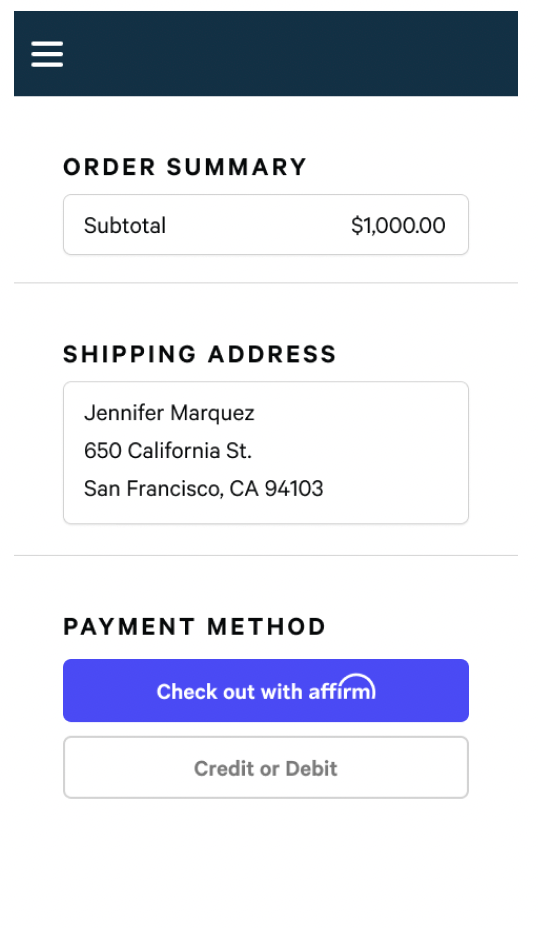 When inspiration strikes, Affirm helps you say yes without giving up financial control. Select Affirm at checkout to split your purchase into monthly payments starting at 0% APR on purchases under $17,500.