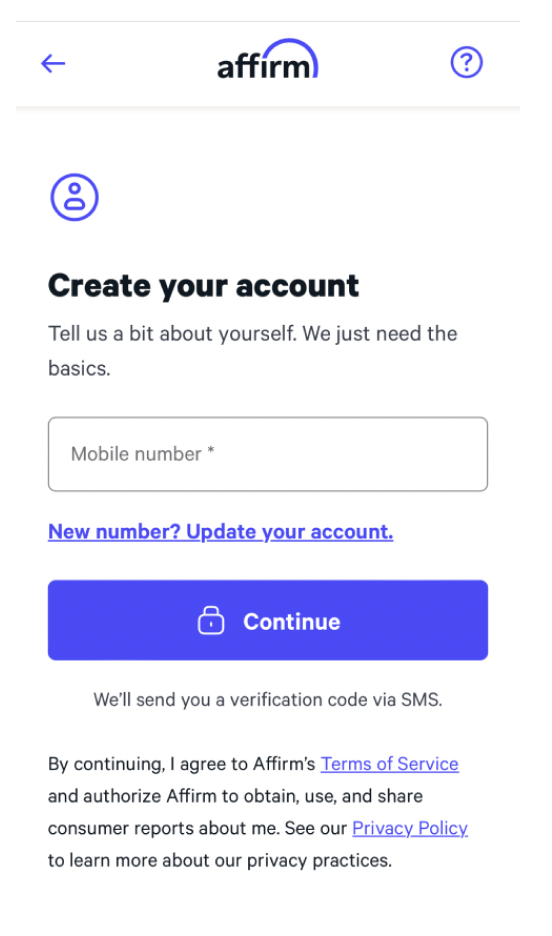 Yes, you’ll need a mobile phone number from the U.S. or U.S. territories. This helps Affirm verify it’s really you who is creating your account and signing in.
