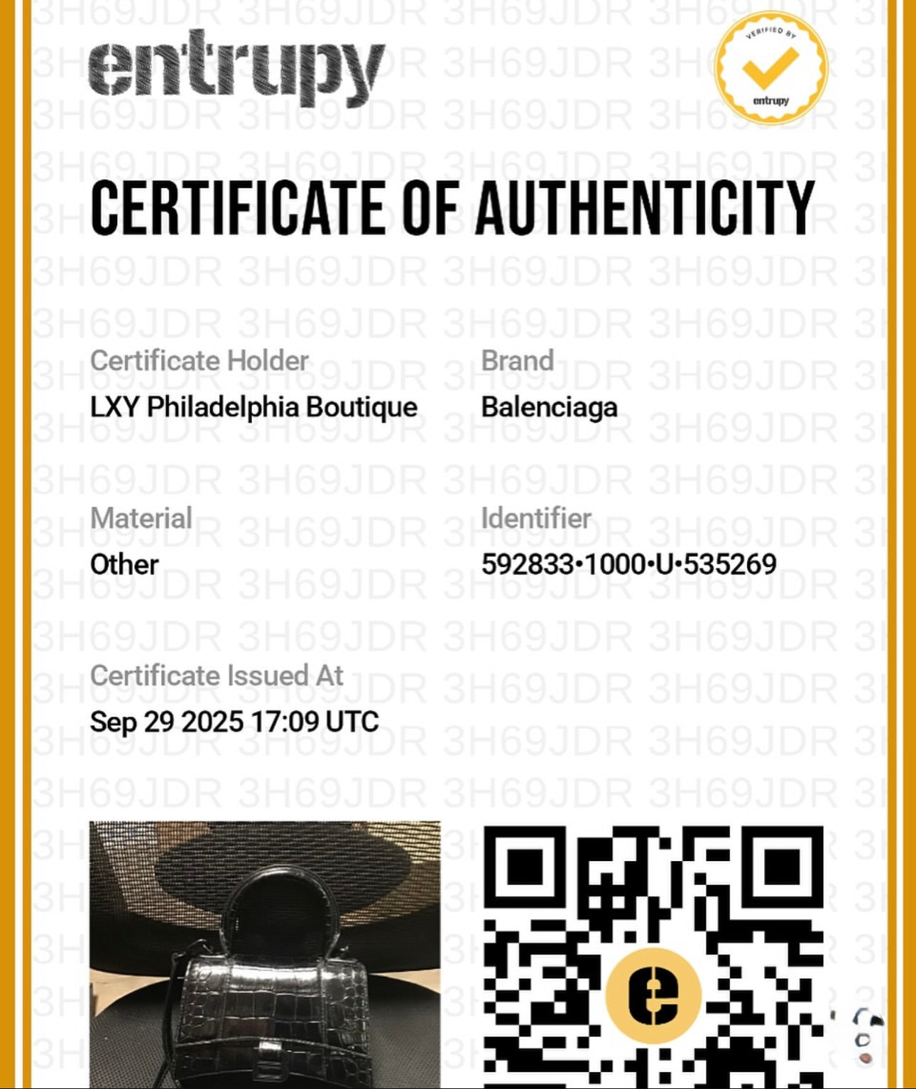 Includes: Certificate of authenticity from Entrupy.
