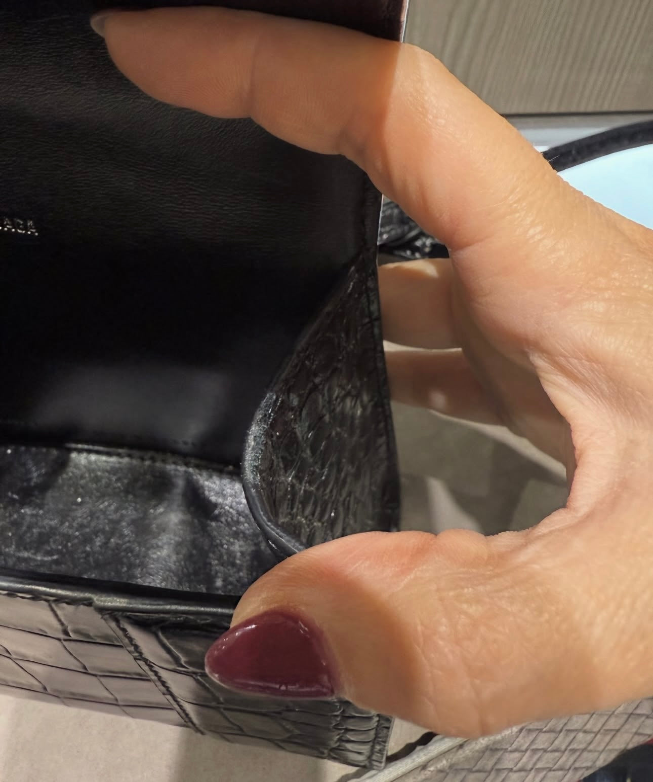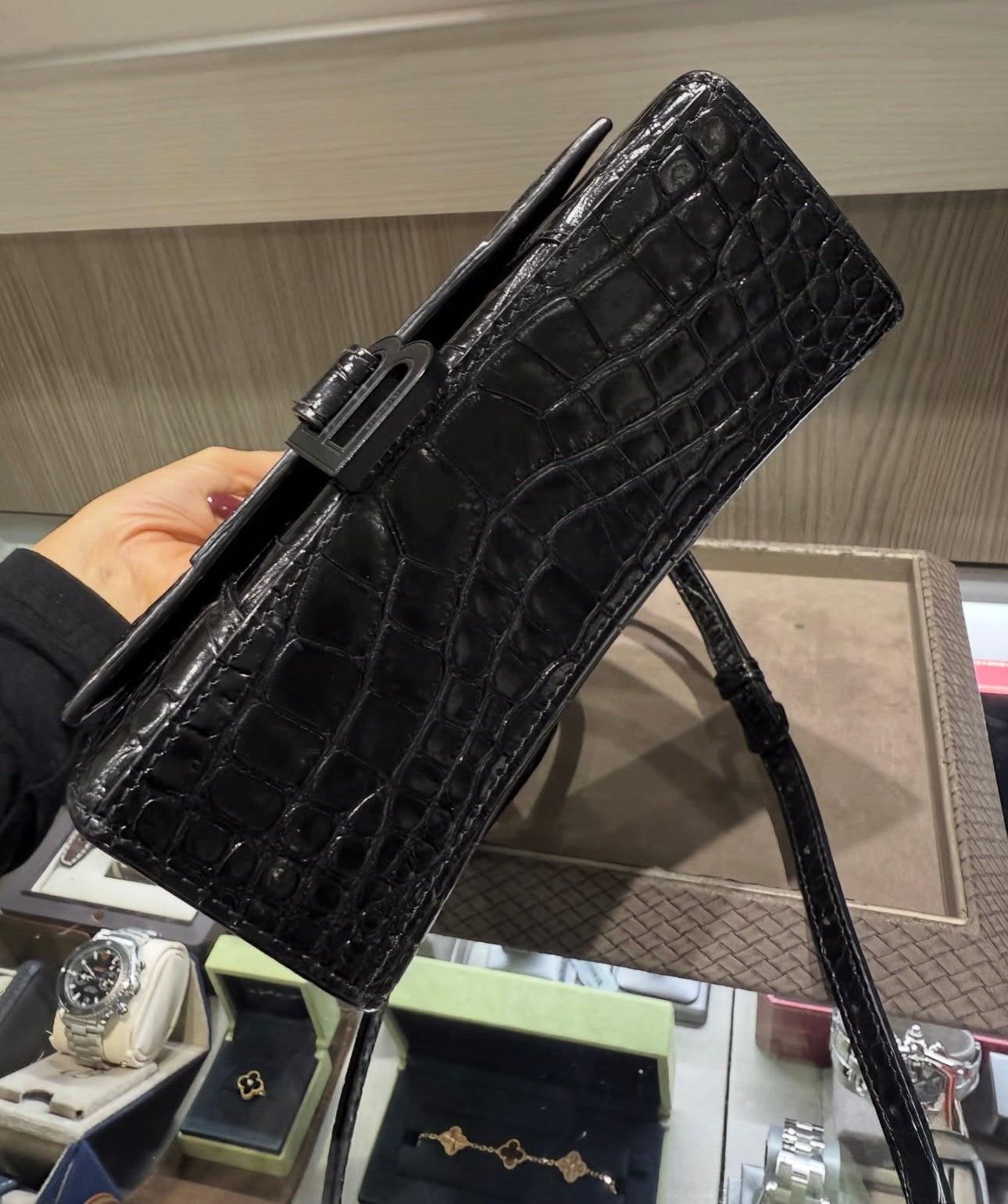 Material: Shiny crocodile-embossed calfskin