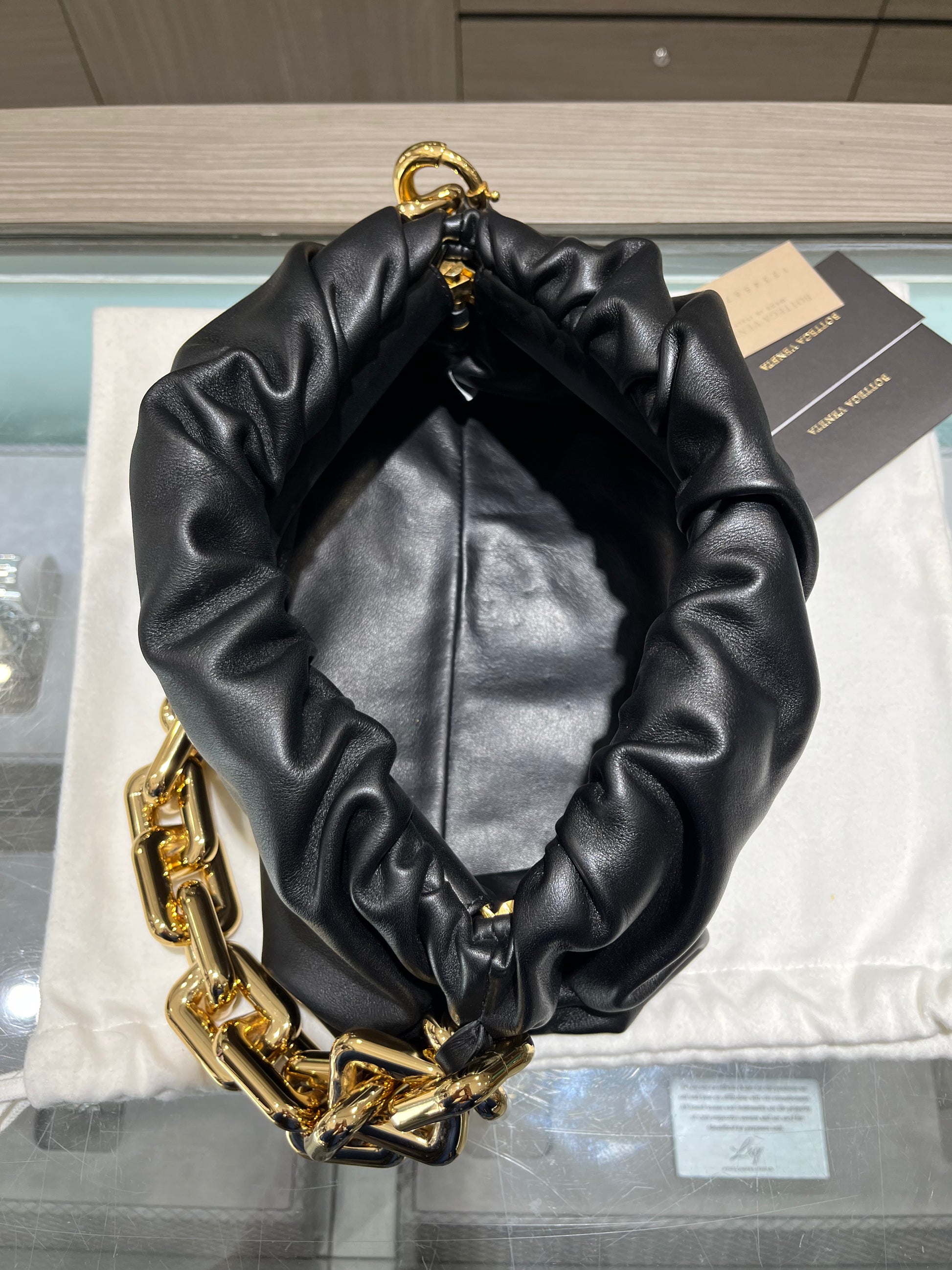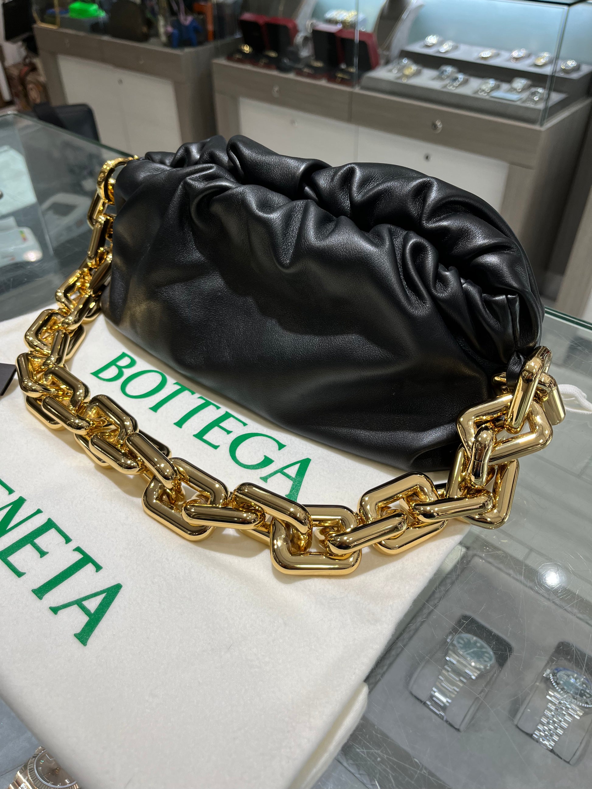 Pre-Owned Bottega Veneta Gold Chain Pouch Black with booklet and duster