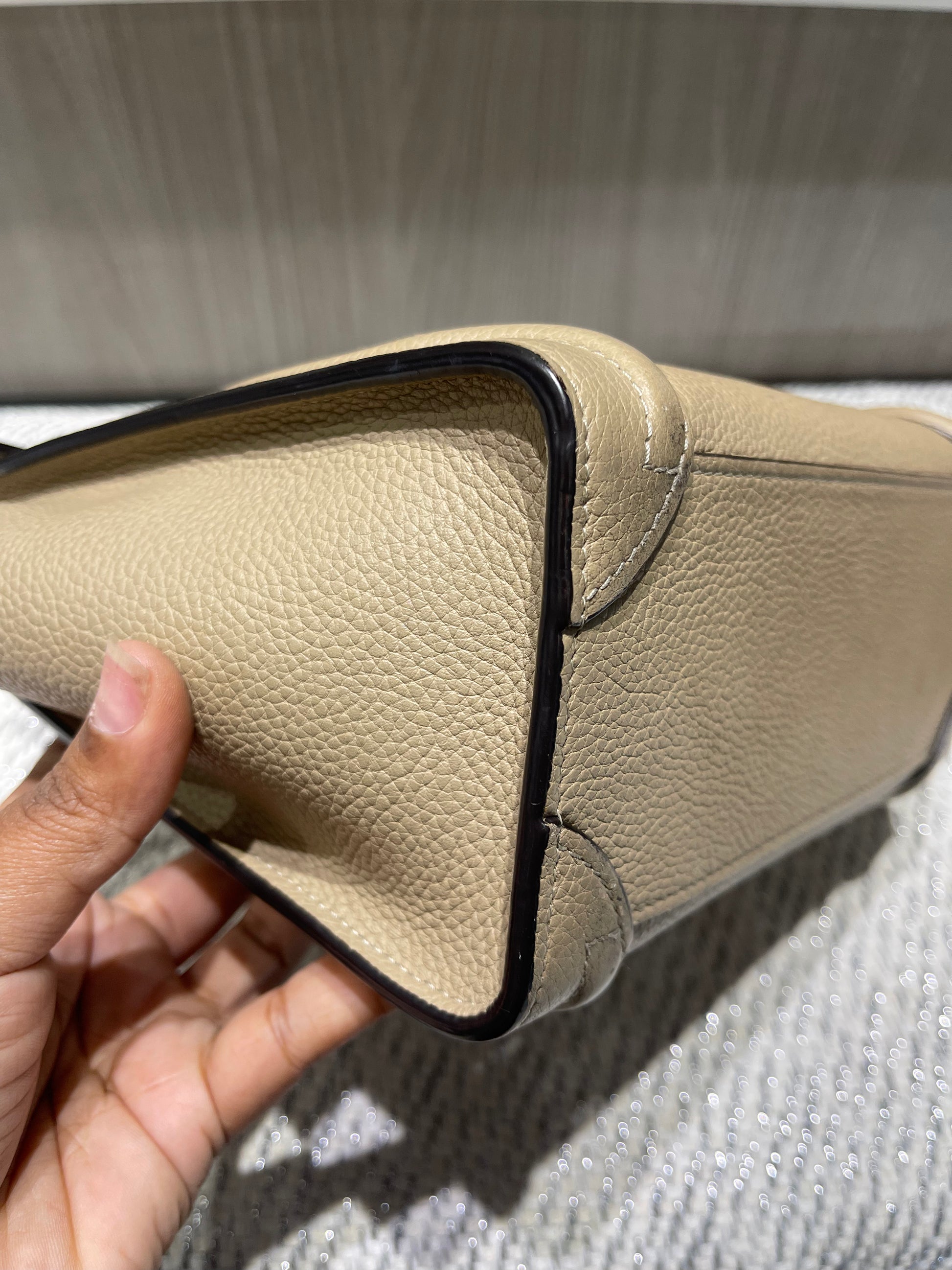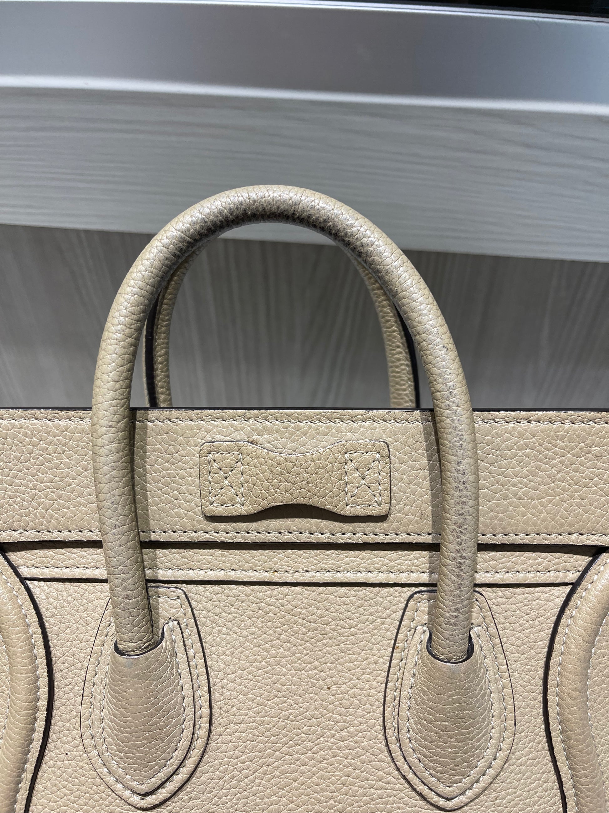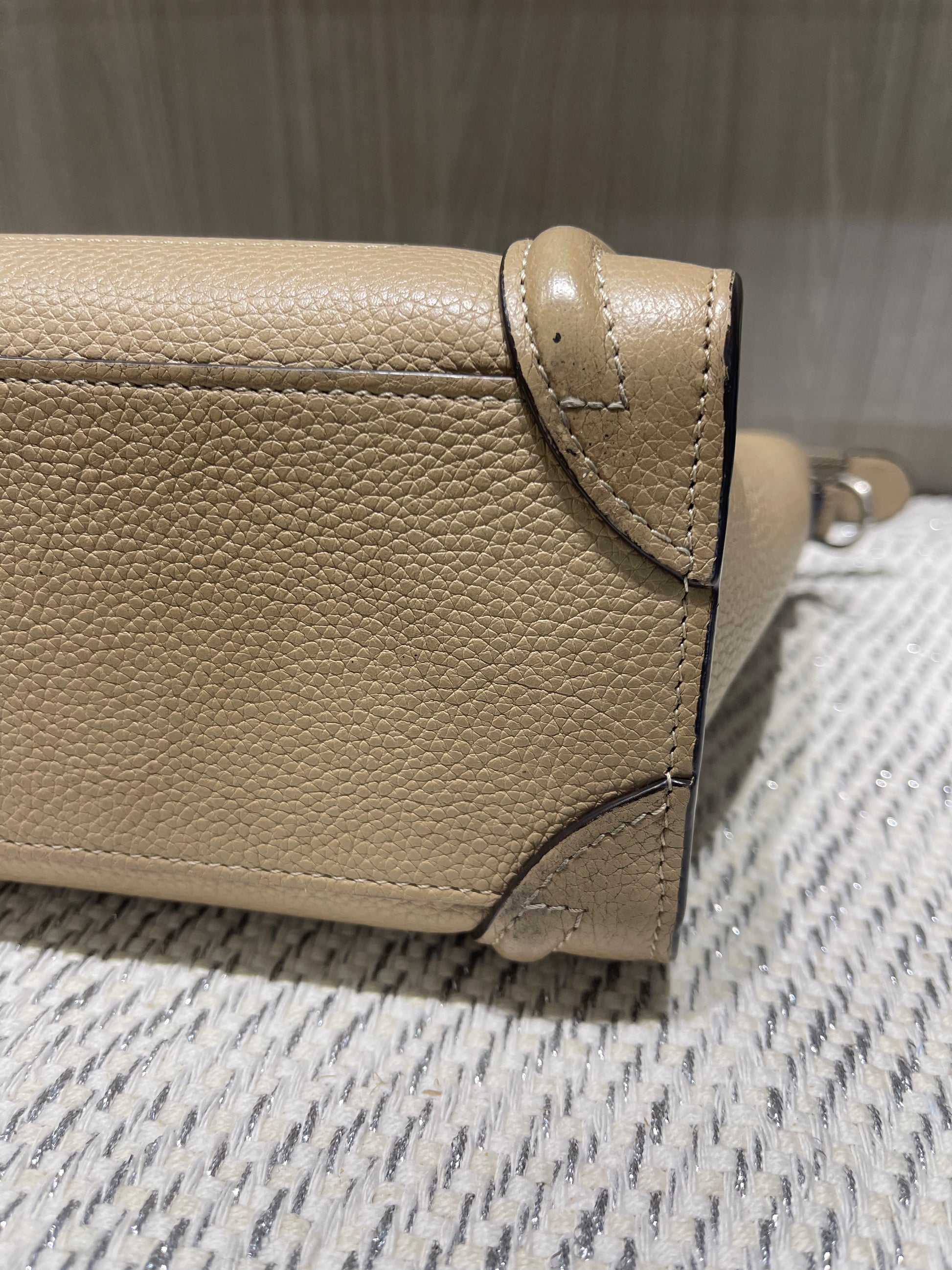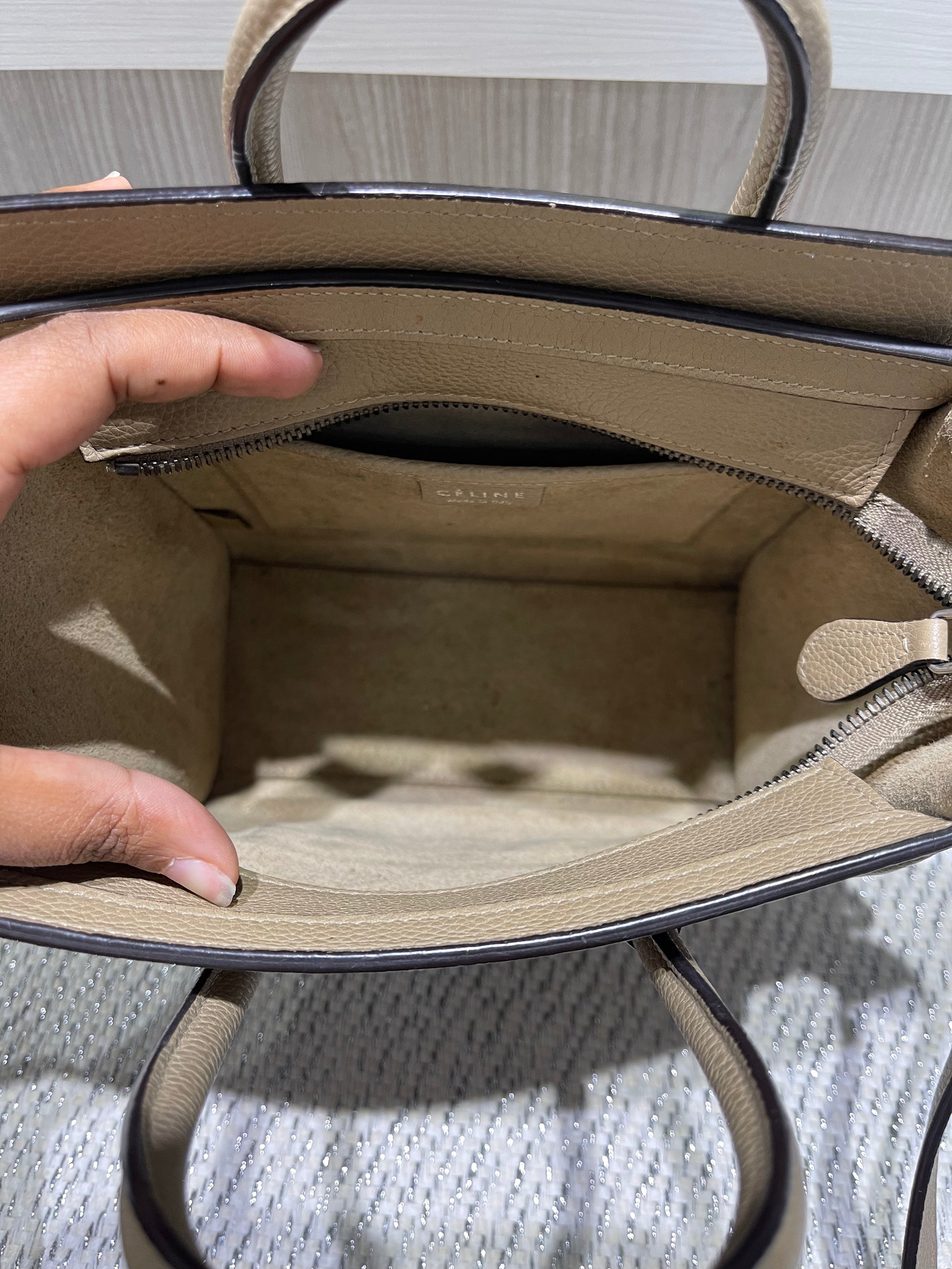 Pre-owned Celine Nano Luggage Tote Drummed Calfskin Taupe