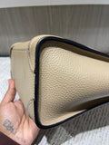 This iconic mini tote features rolled leather top handles, decorative leather detailing, an exterior zip pocket, and a removable shoulder strap with aged silver-tone hardware. Compact yet functional, perfect for everyday or travel use.