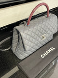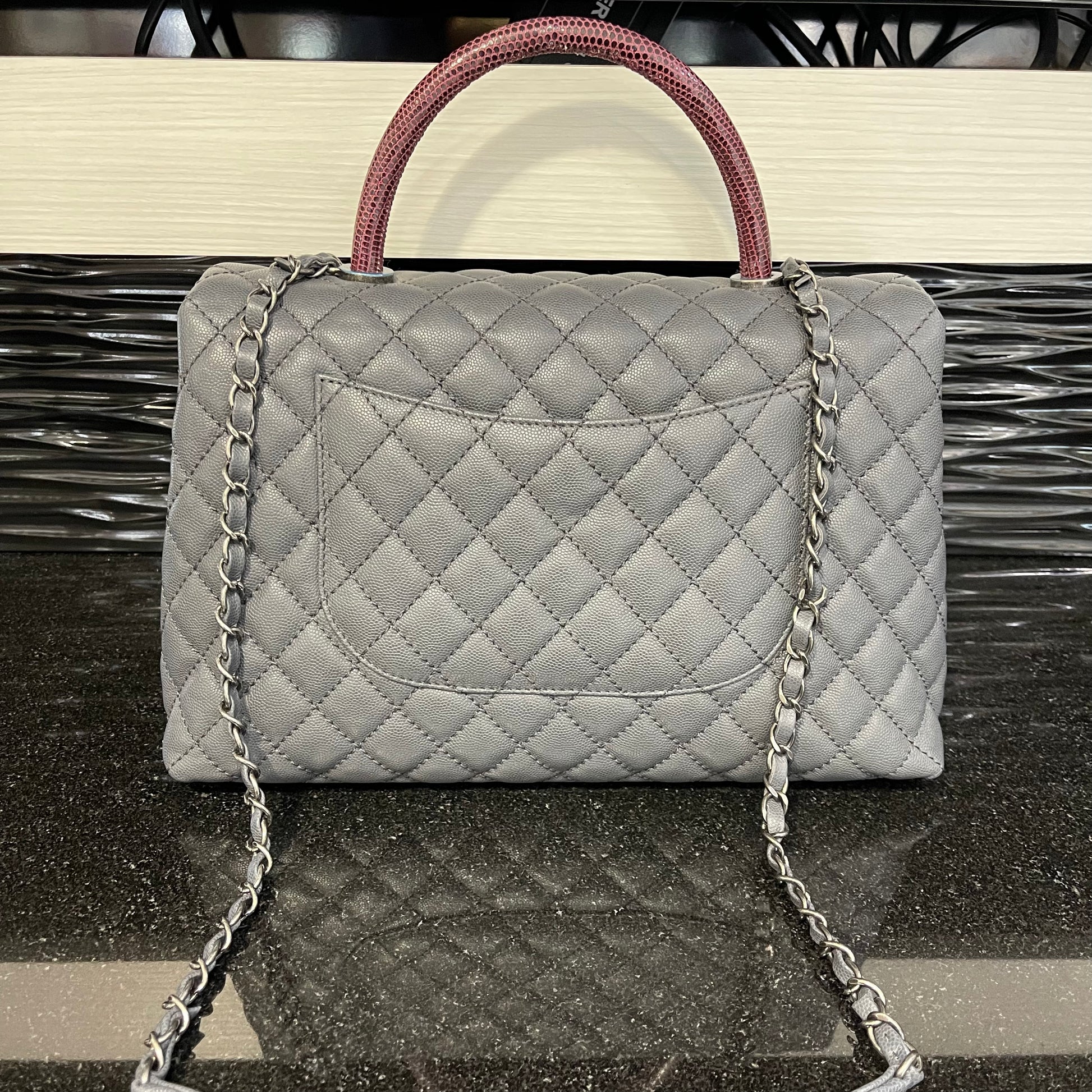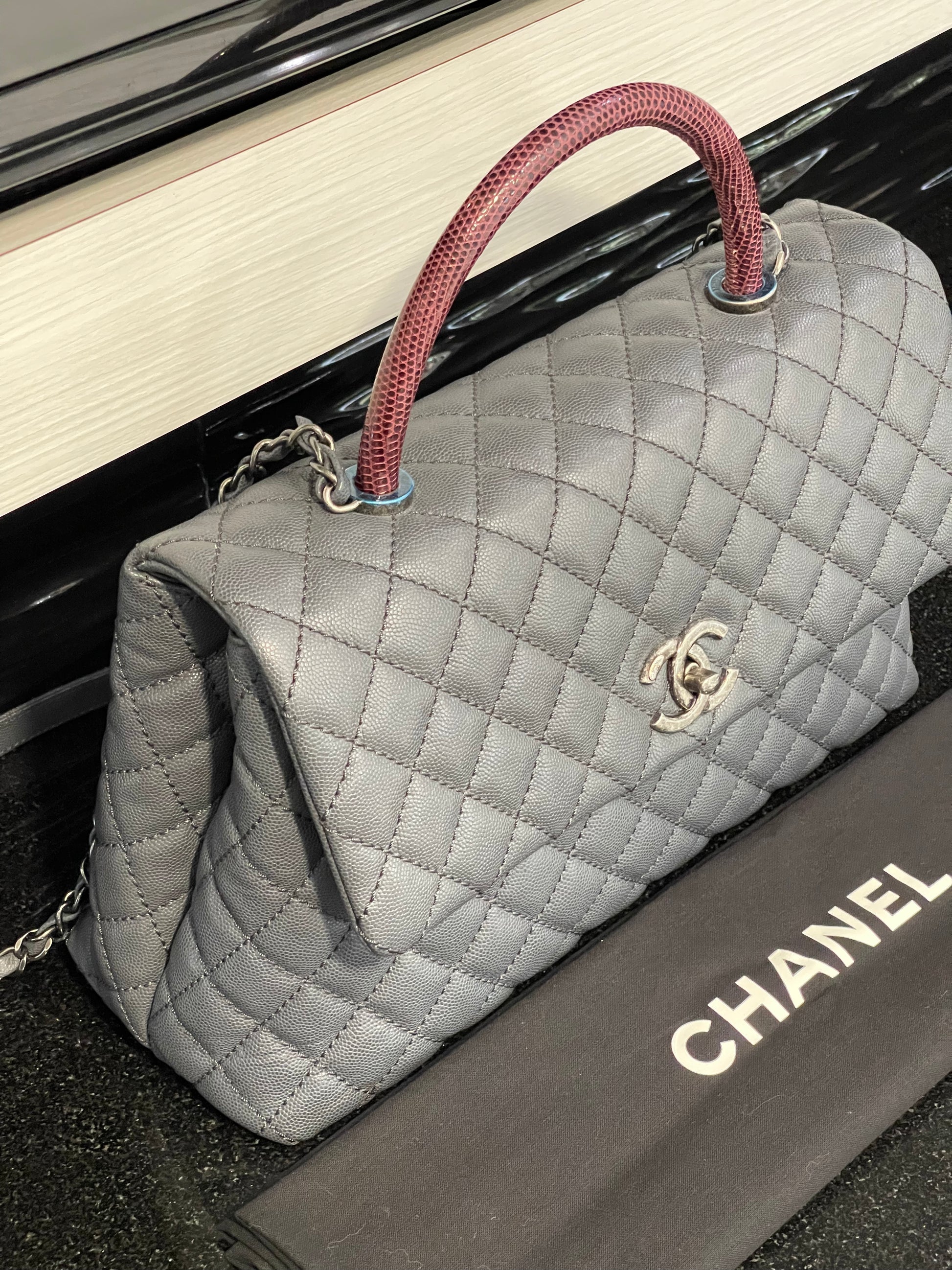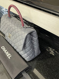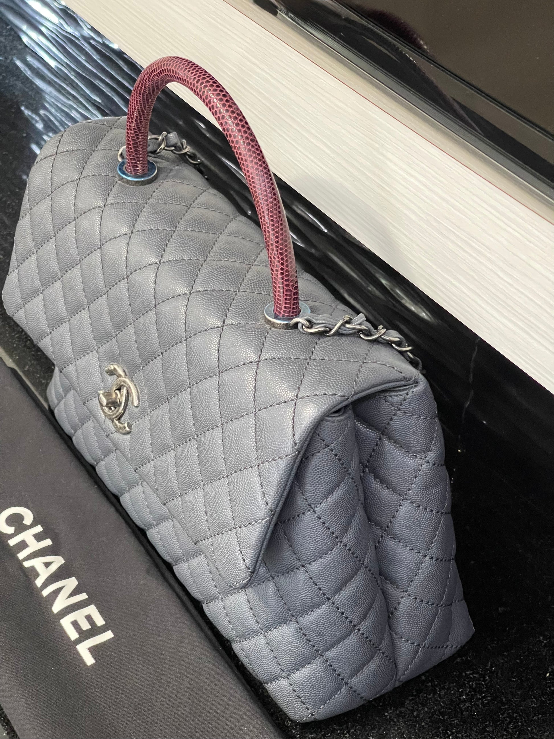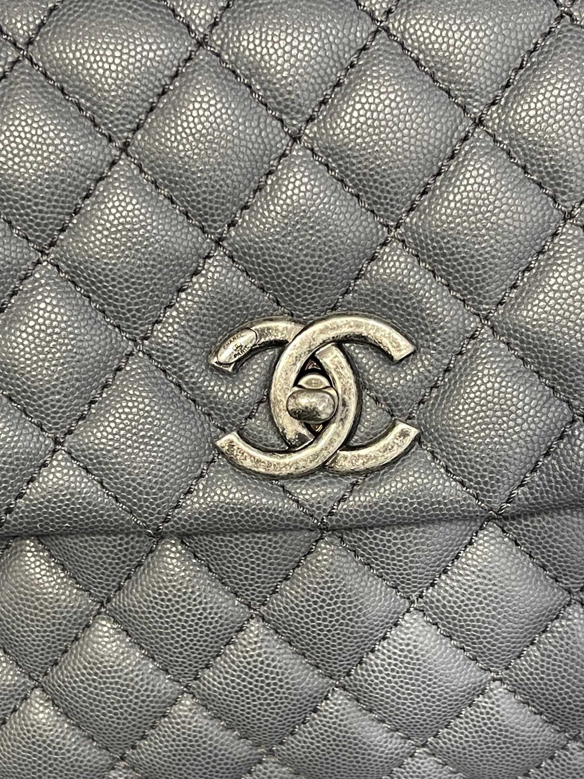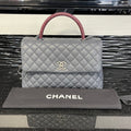 Pre-owned Chanel Medium Coco Handle Bag Grey Caviar with Lizard Trim