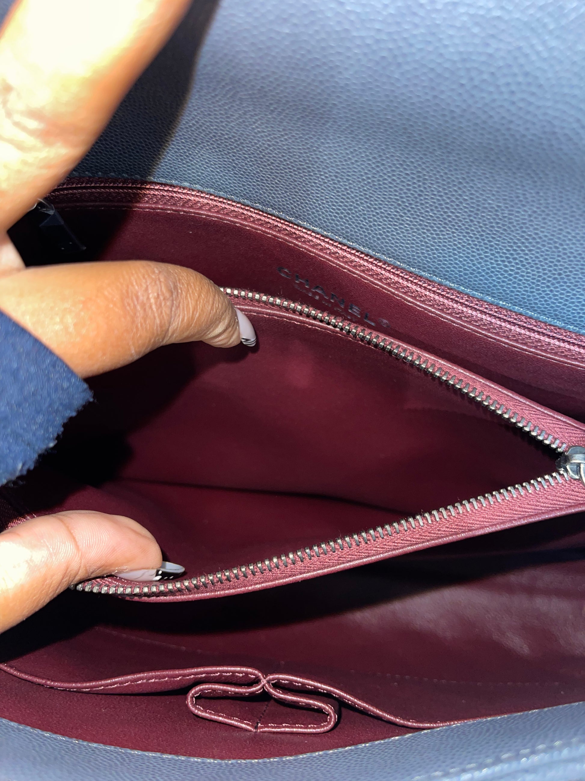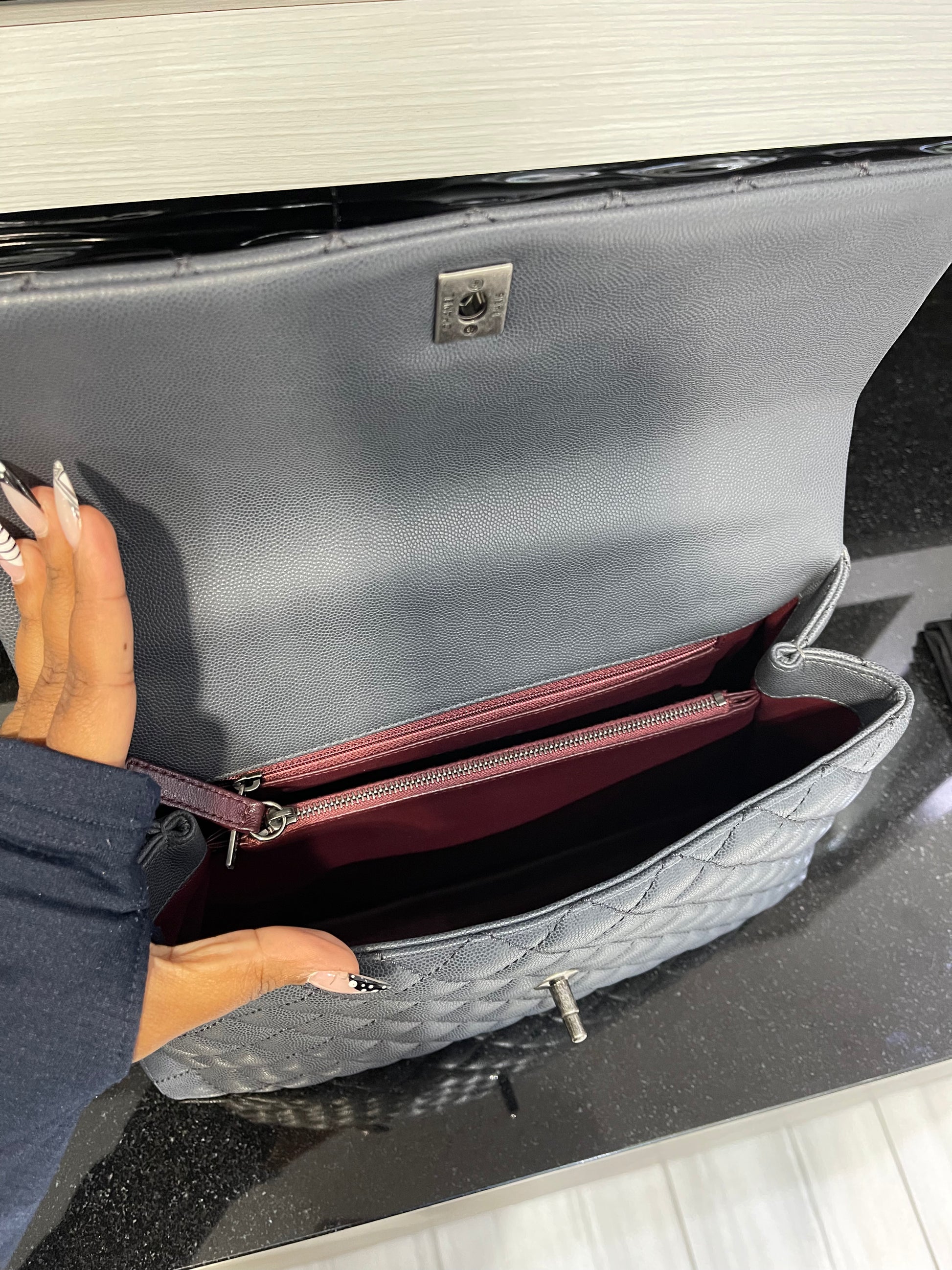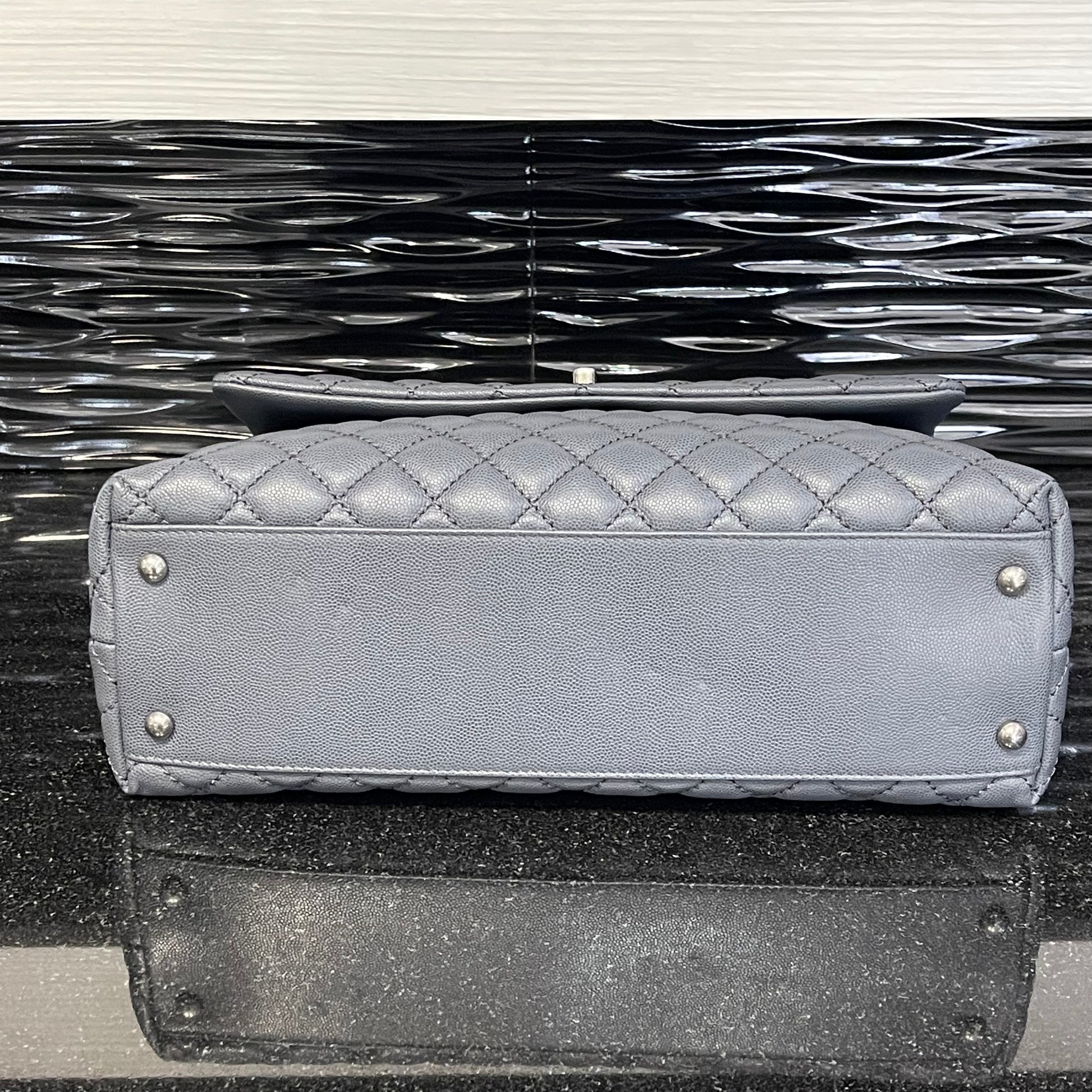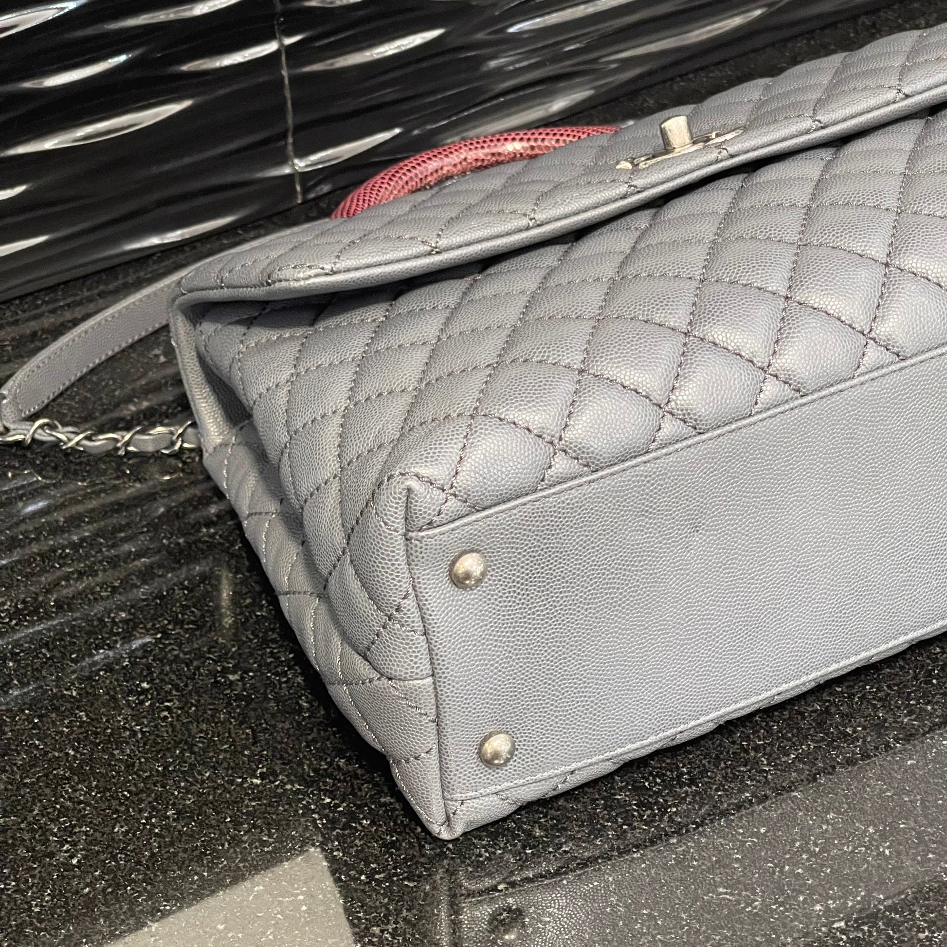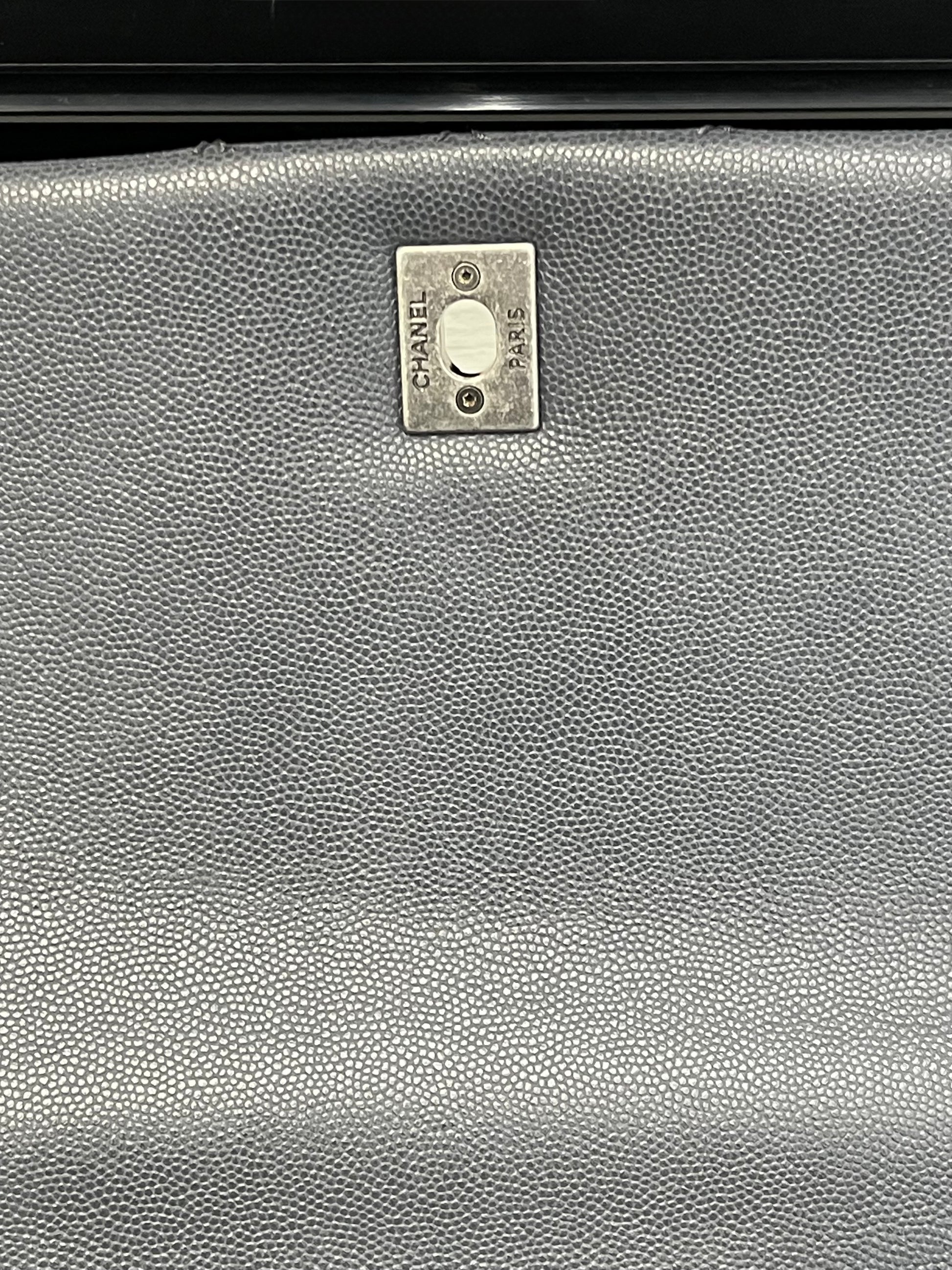 Pre-owned Chanel Medium Coco Handle Bag Grey Caviar with Lizard Trim