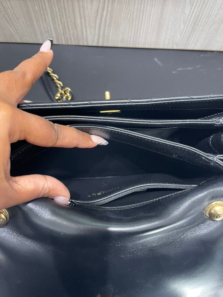 The three-compartment interior is fully lined in smooth black lambskin, offering exceptional structure and organization. Inside, you’ll find one open pocket and one zippered pocket—perfect for securing your daily essentials with style.
