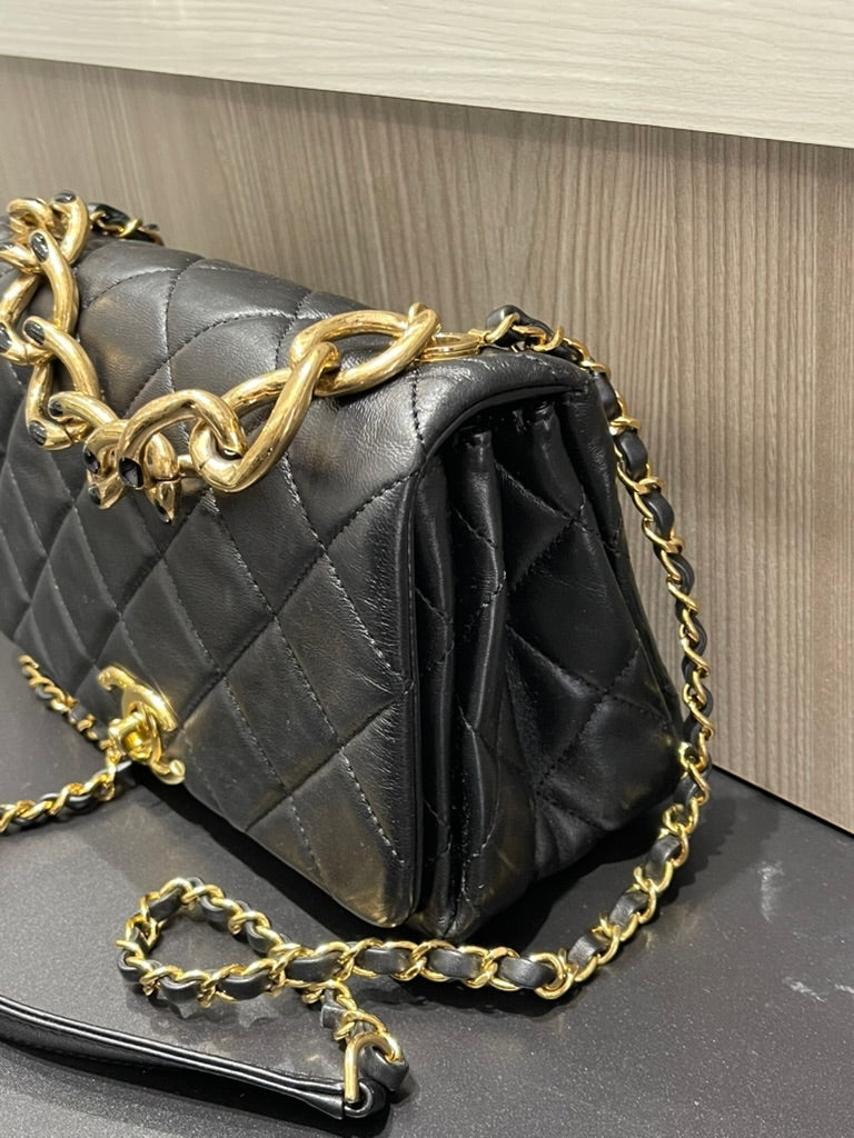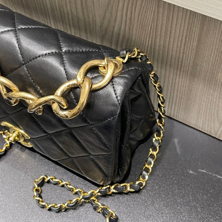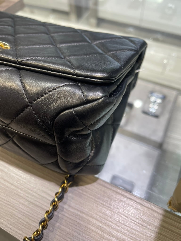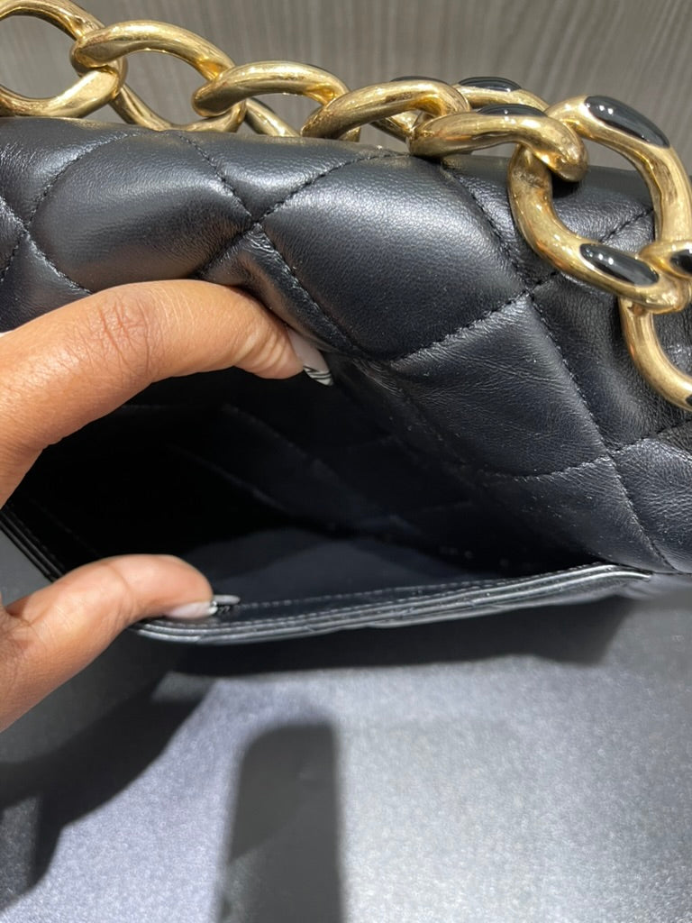 Material: Black quilted lambskin leather