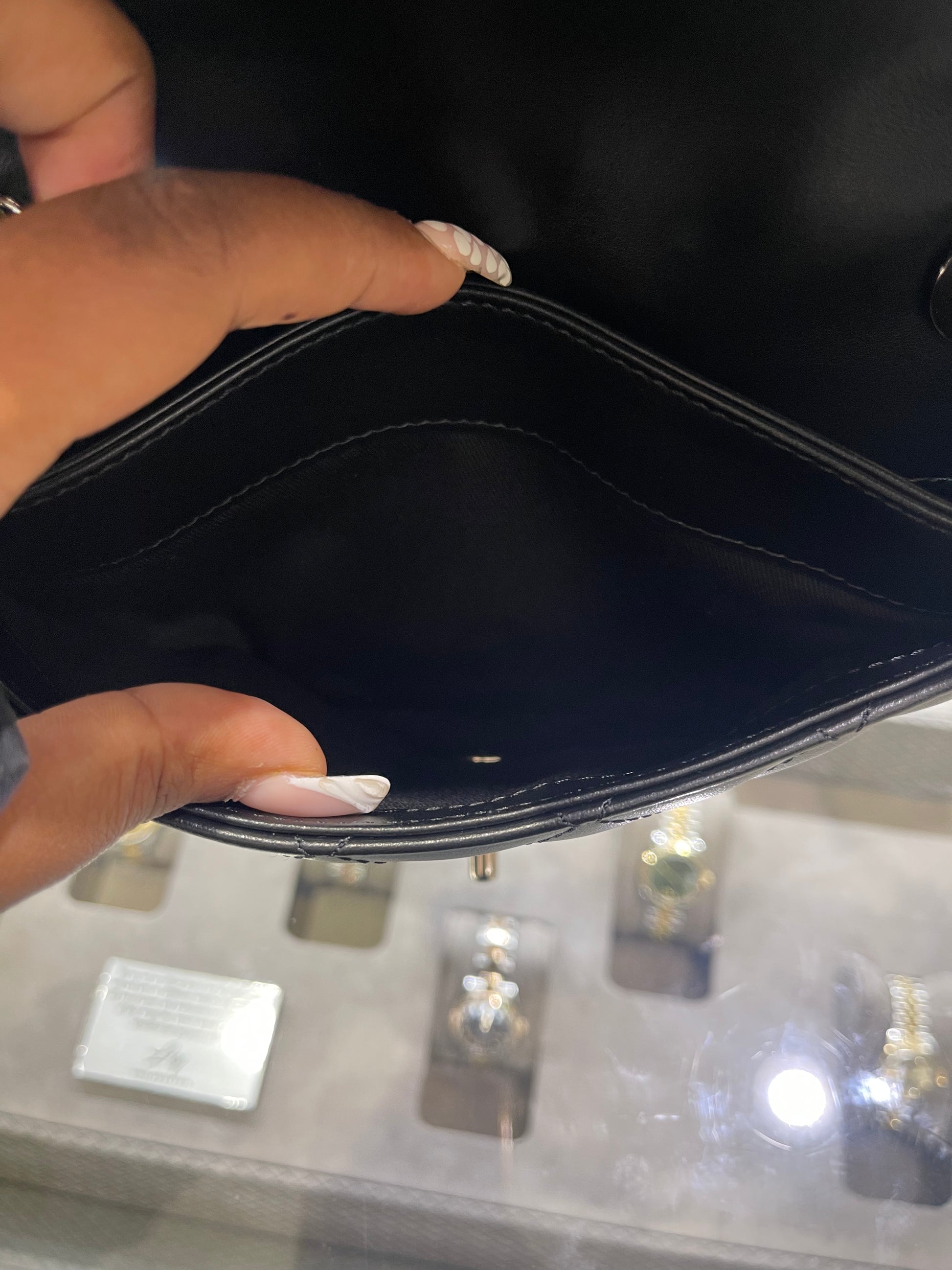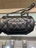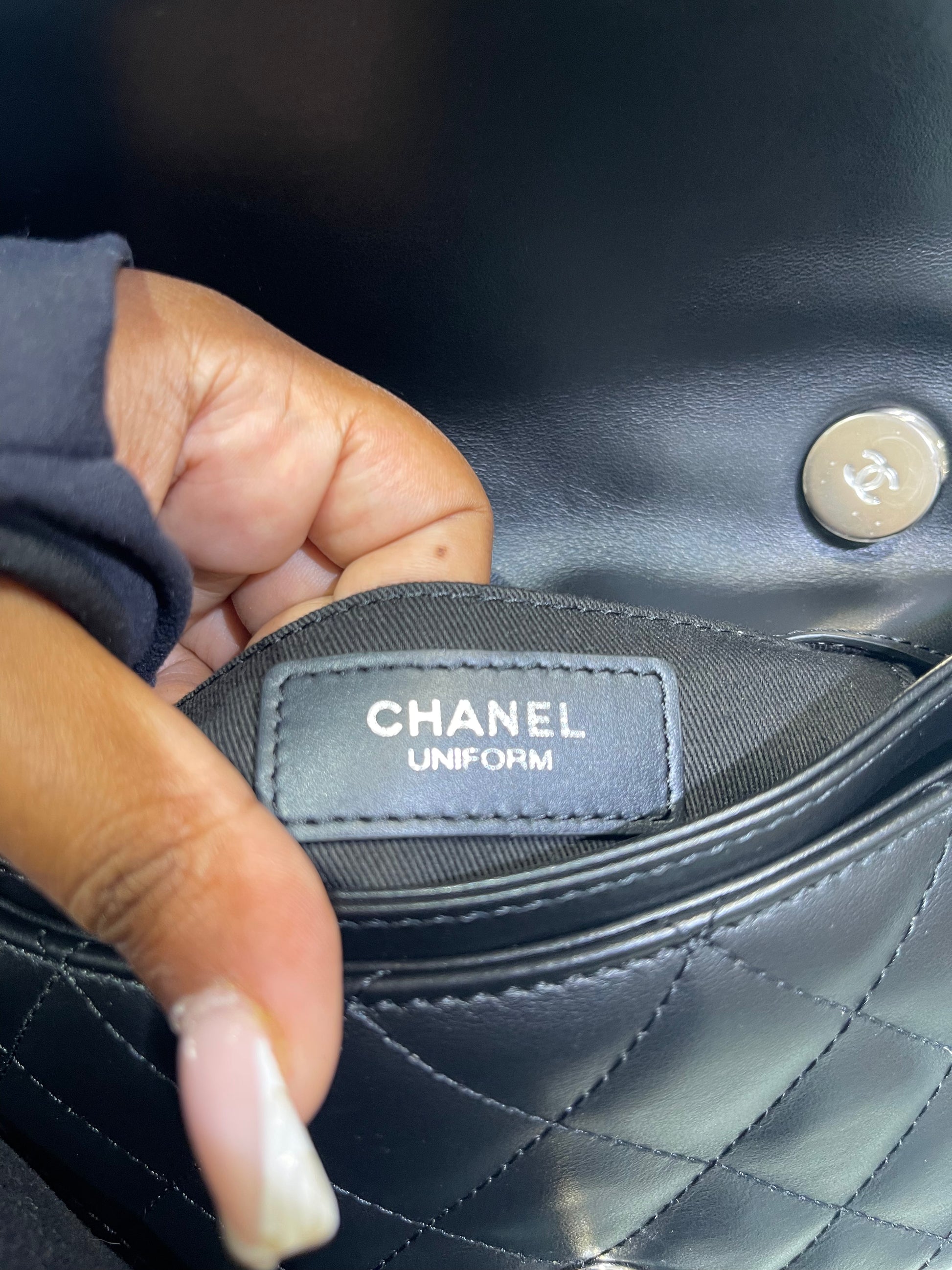 Modern, versatile, and unmistakably Chanel, this Uniform Bum Bag is crafted in black diamond-quilted calfskin leather and finished with elegant silver-tone hardware. A sleek take on hands-free styling, the bag features a leather-threaded silver chain-link belt strap, a front flap with CC turn-lock closure, and a compact yet practical interior.
